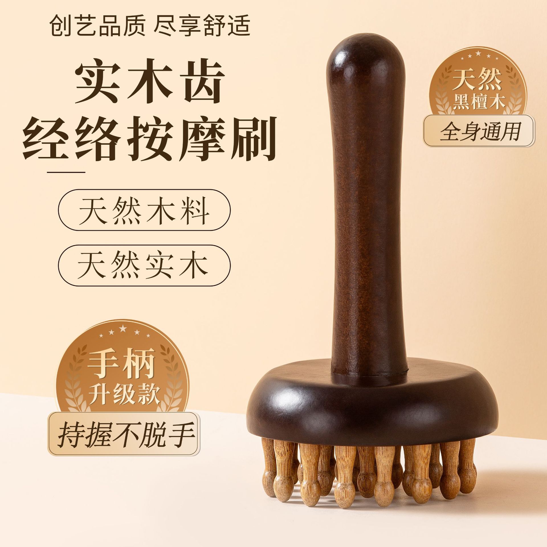 【檀木款】带脉经络刷-28牛筋齿+穴位图+精油