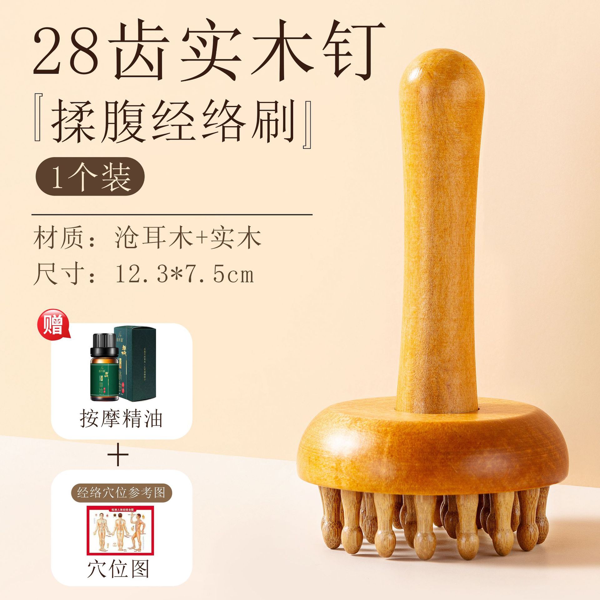 【原木款】带脉经络刷-28木齿+穴位图+精油