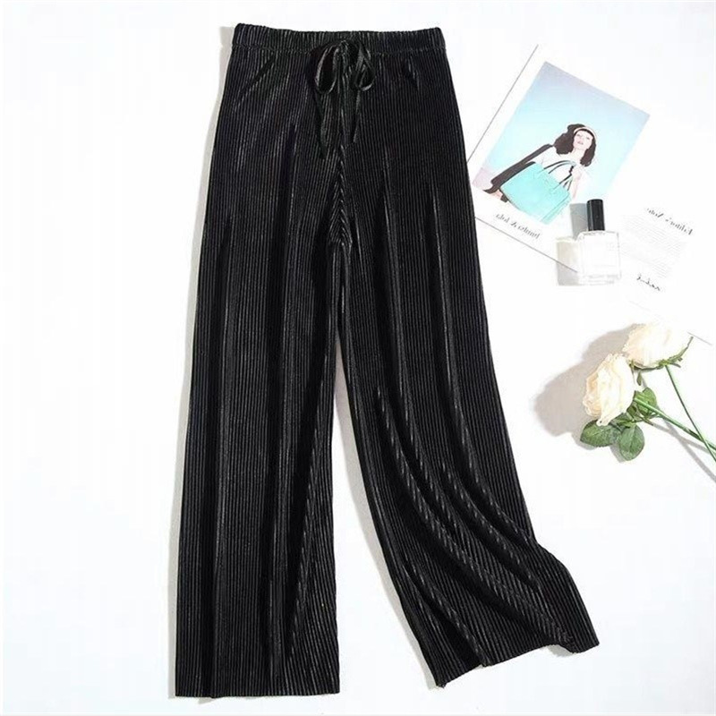 阔腿裤女春夏新款垂感大码宽松冰丝韩版学生ins雪纺休闲九分裤子