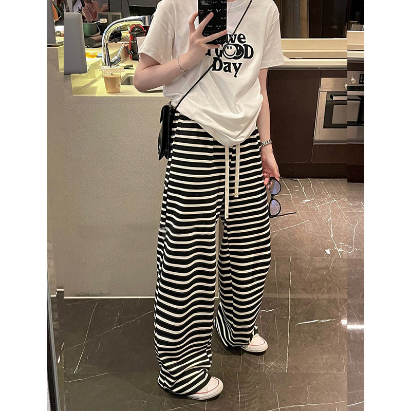 数码满幅印花休闲裤女装2025夏季新款日式显瘦运动ins直筒长裤