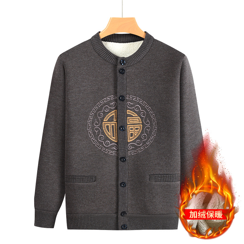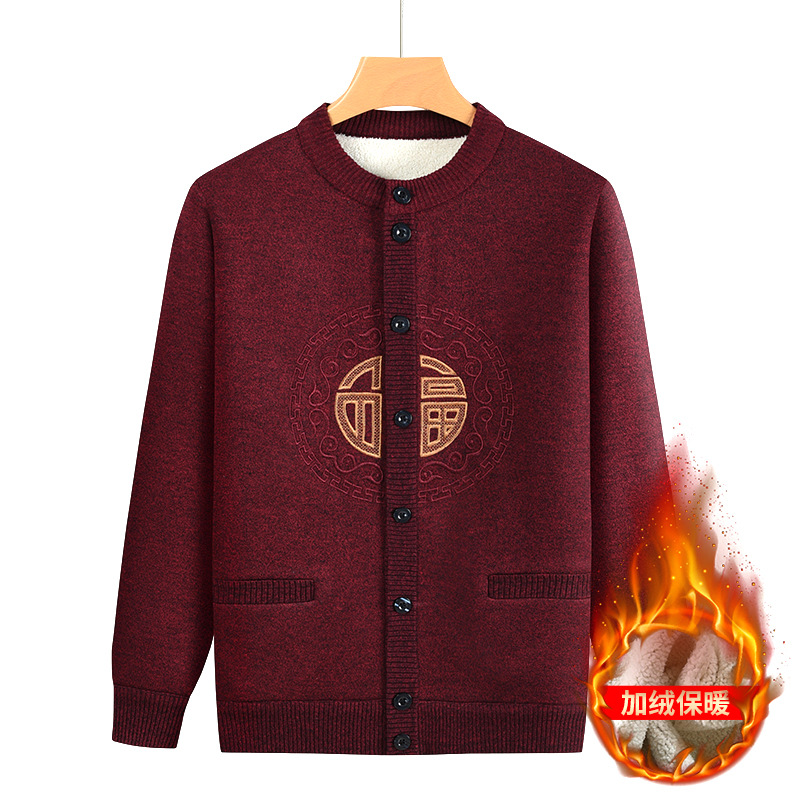 2025老年人秋冬毛衣中老年爸爸装加绒保暖外套爷爷针织开衫男批发