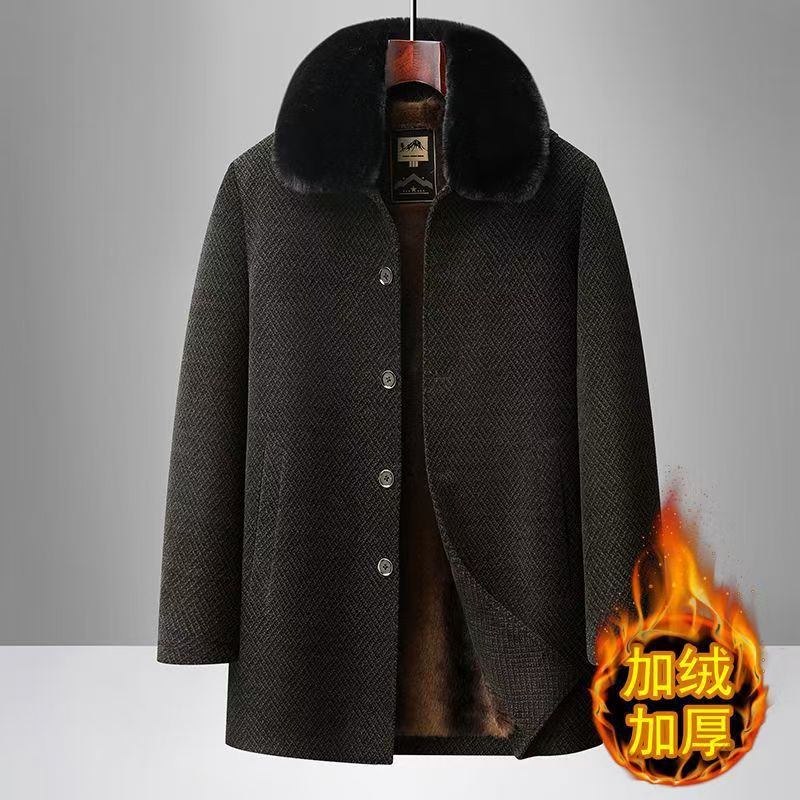 男士大衣爸爸冬装外套加绒加厚保暖棉服中老年棉衣男爷爷棉袄外套