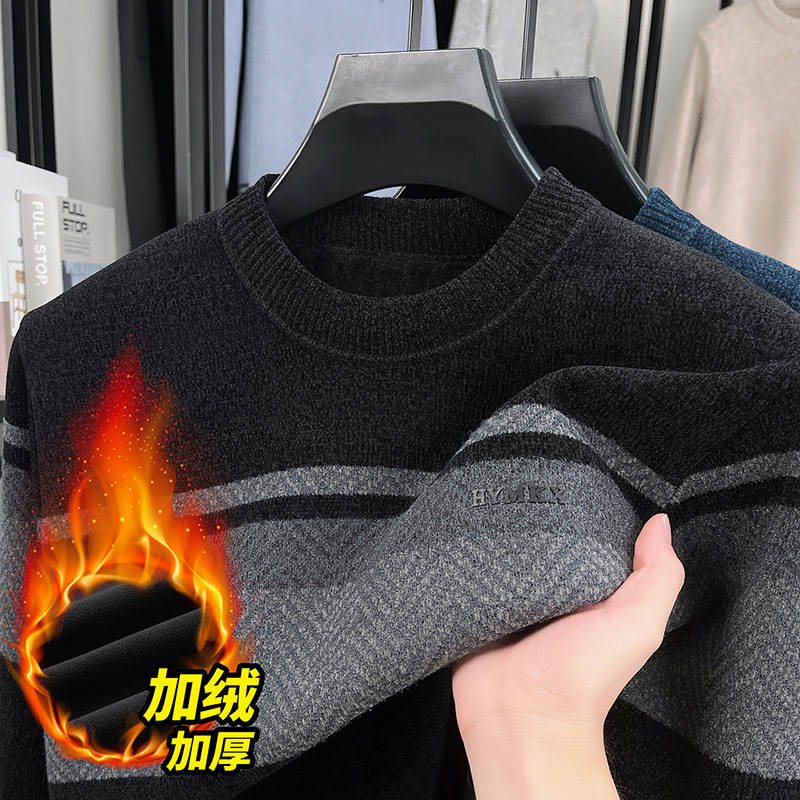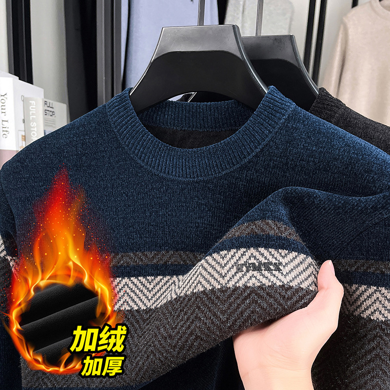 爸爸冬装加绒加厚毛衣中年男士雪尼尔保暖针织衫中老年人爷爷上衣