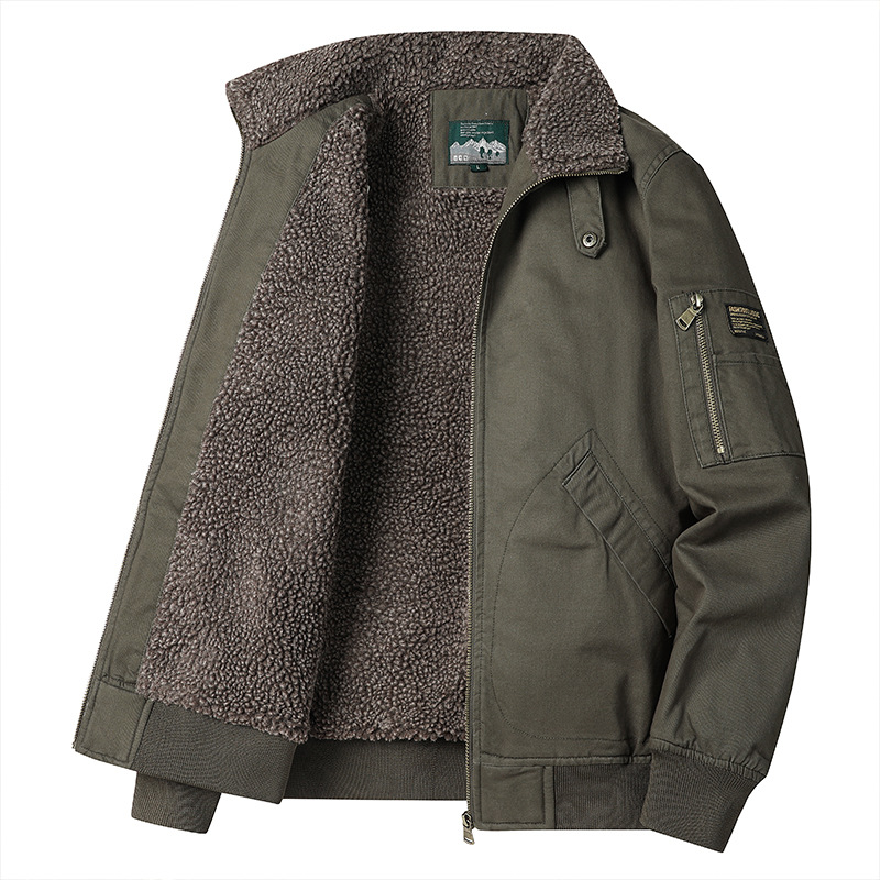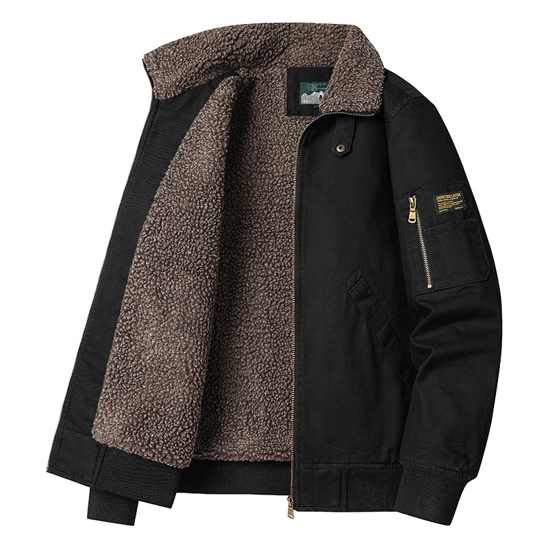 HTN2025男装冬季保暧高档男士时尚加绒夹克外套羊羔绒工装棉服