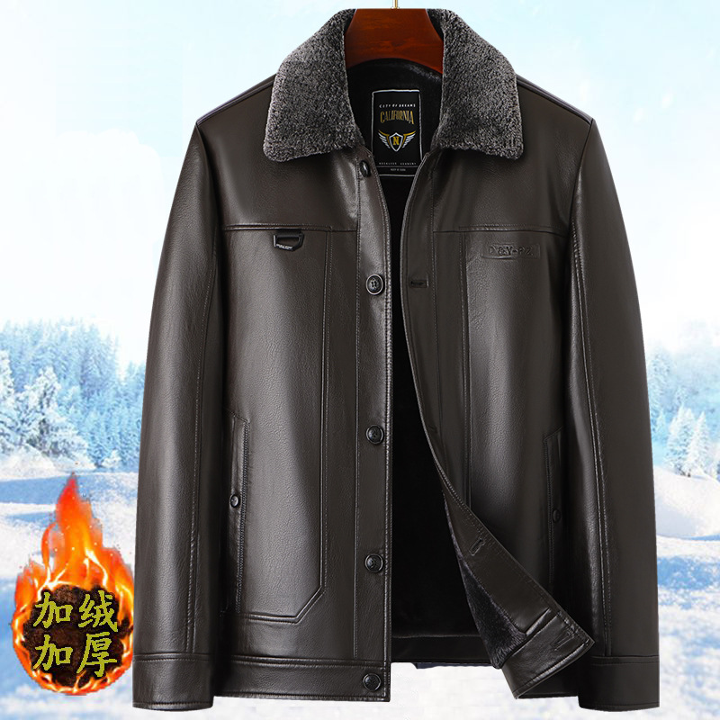 中老年爸爸装皮衣男加绒加厚保暖皮夹克冬季老人父亲皮毛一体外套