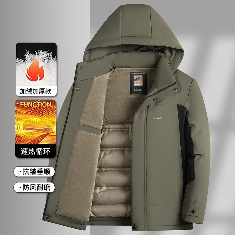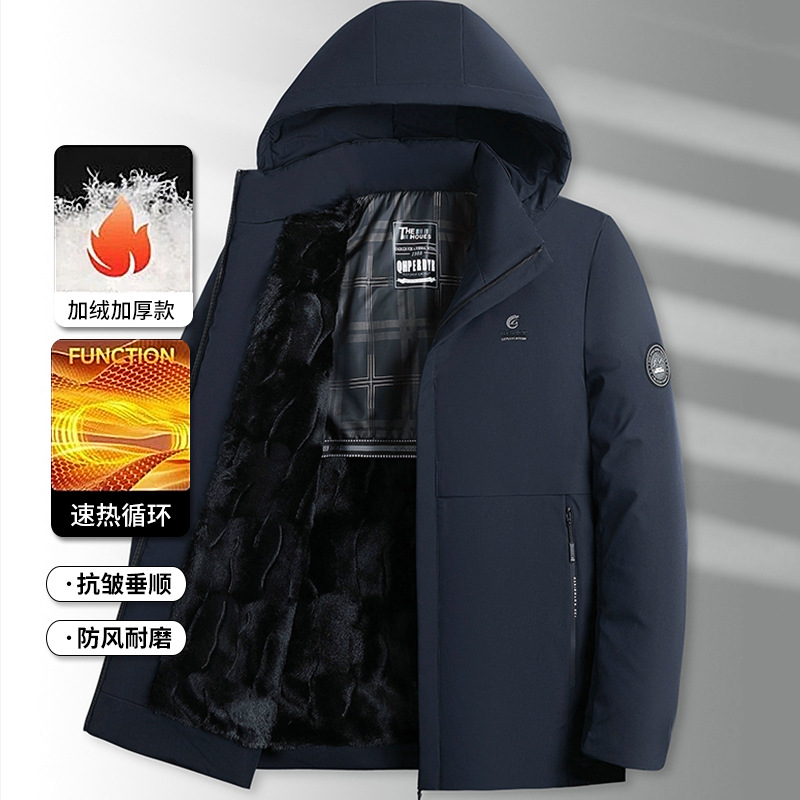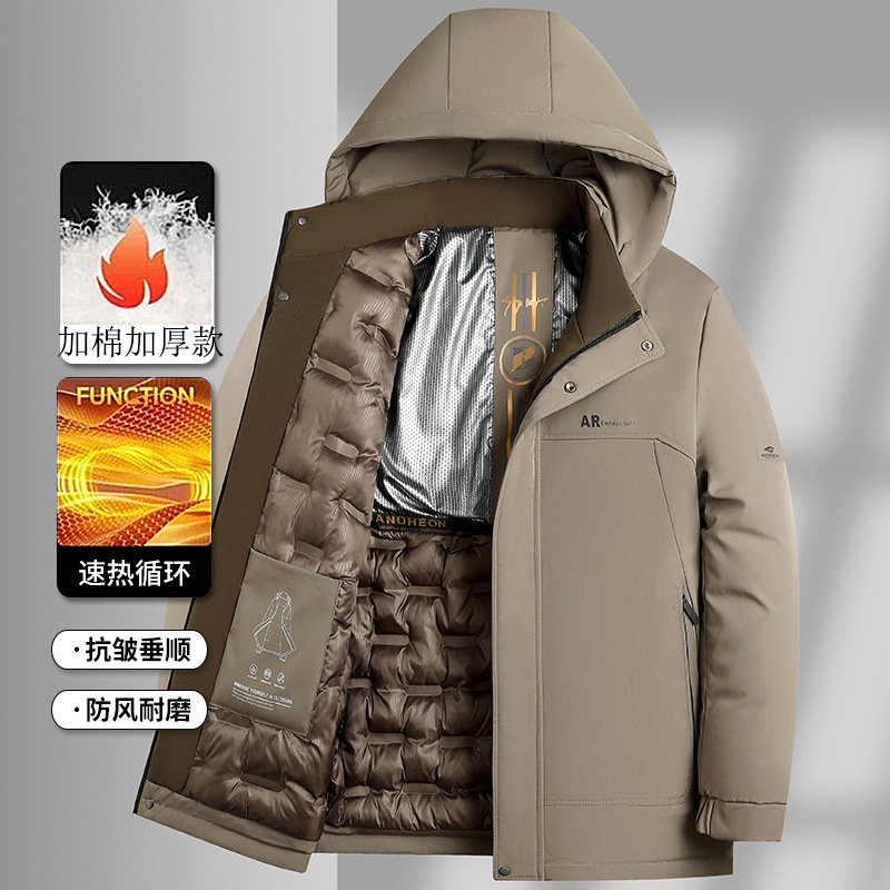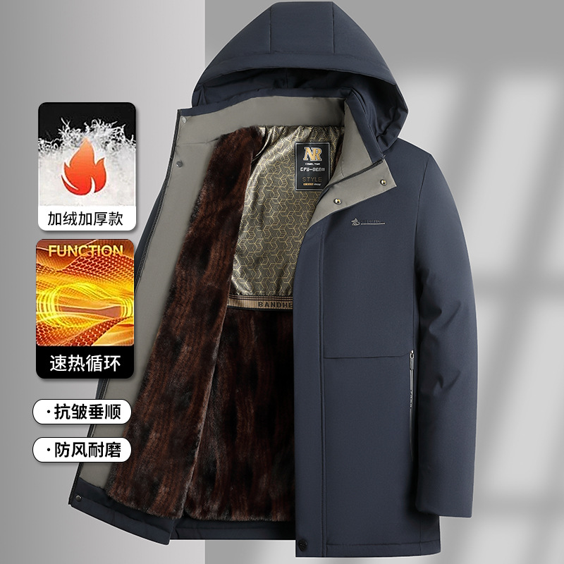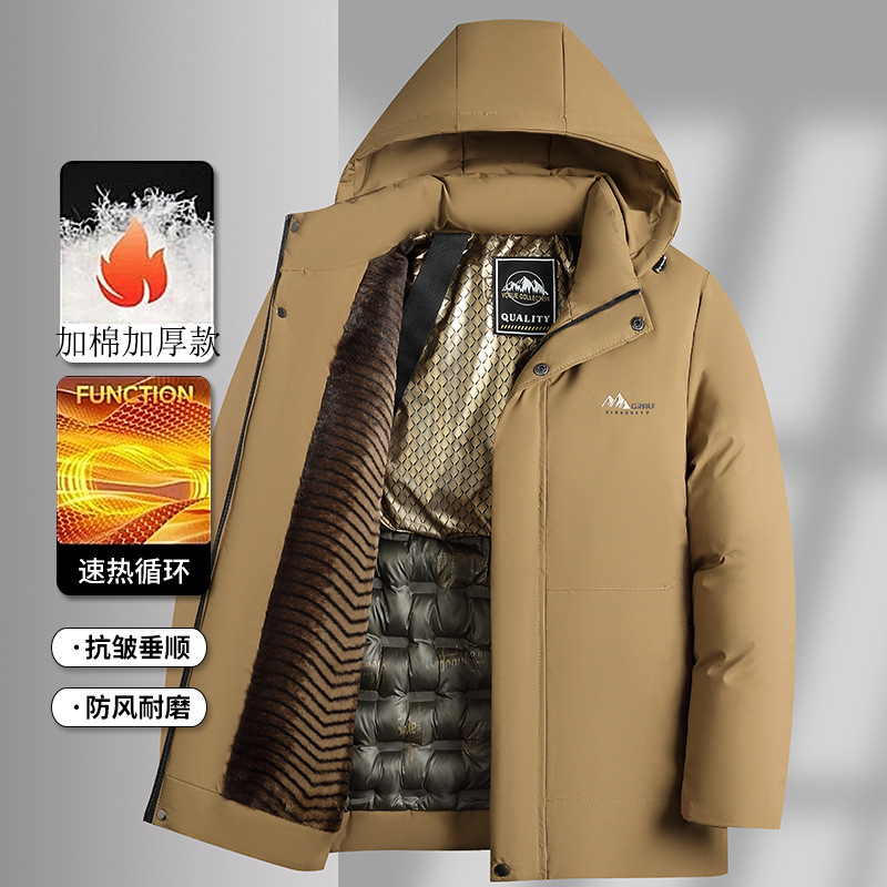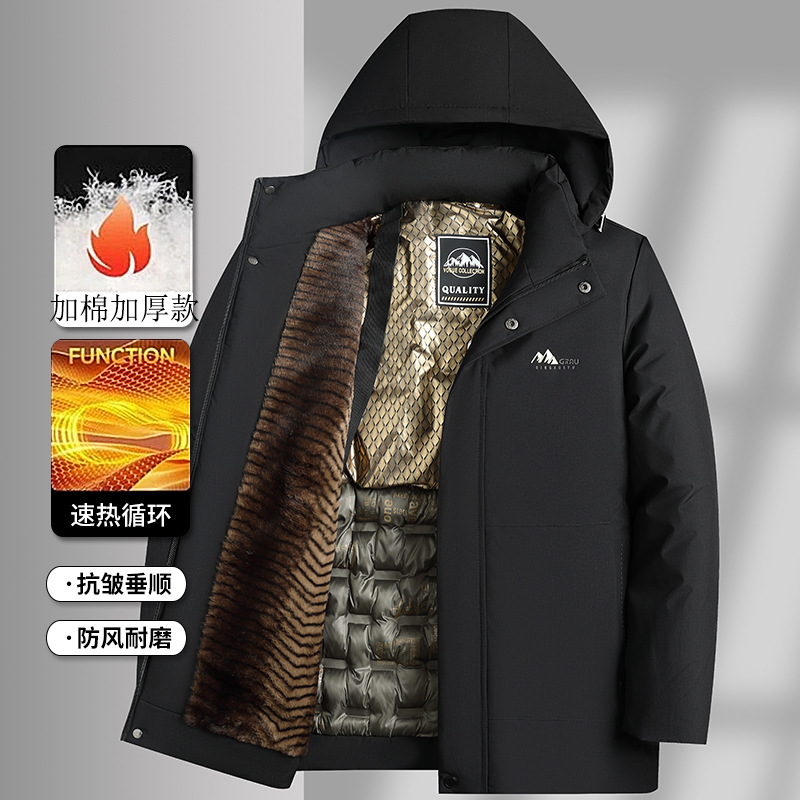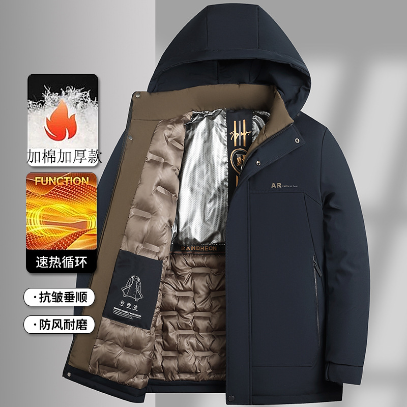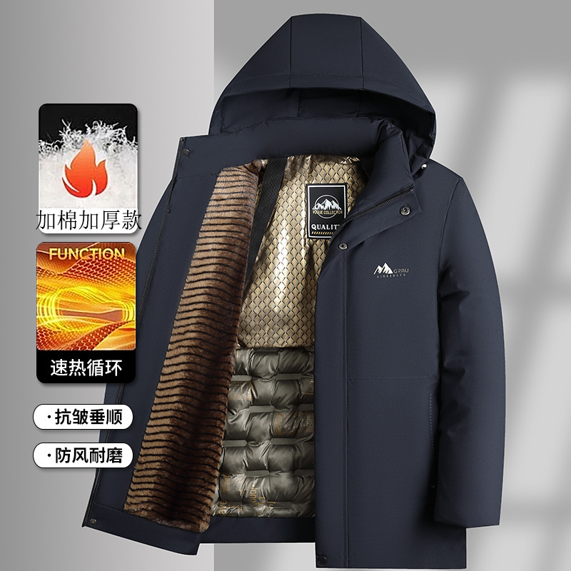 中老年男装棉衣加绒加厚中长款外套冬季爷爷棉服连帽大衣保暖棉袄