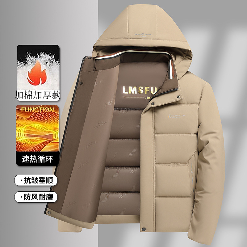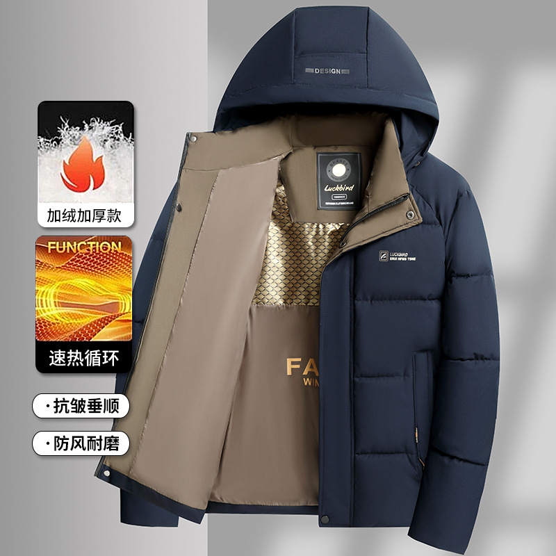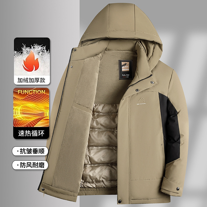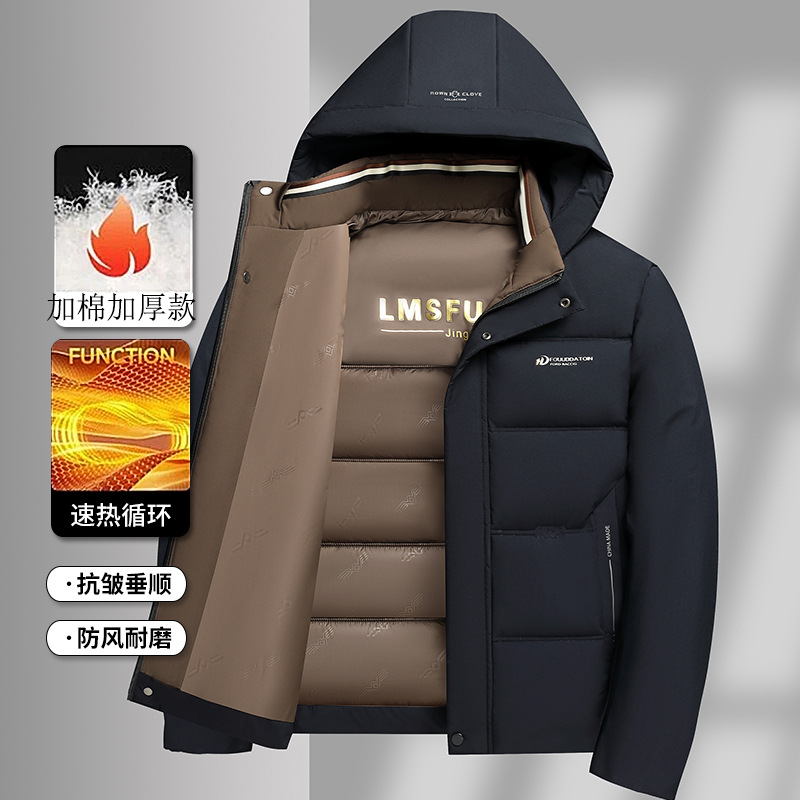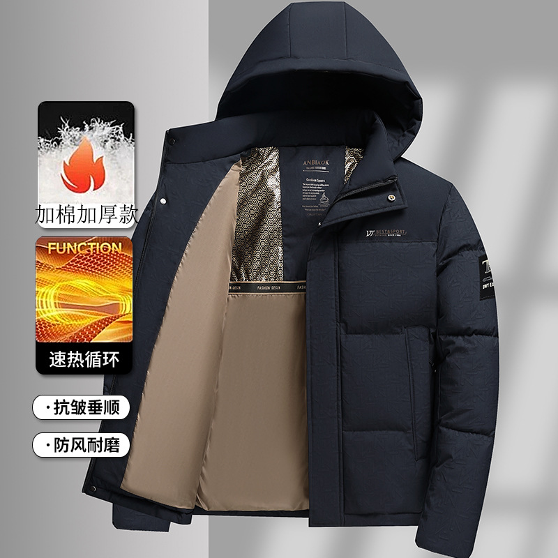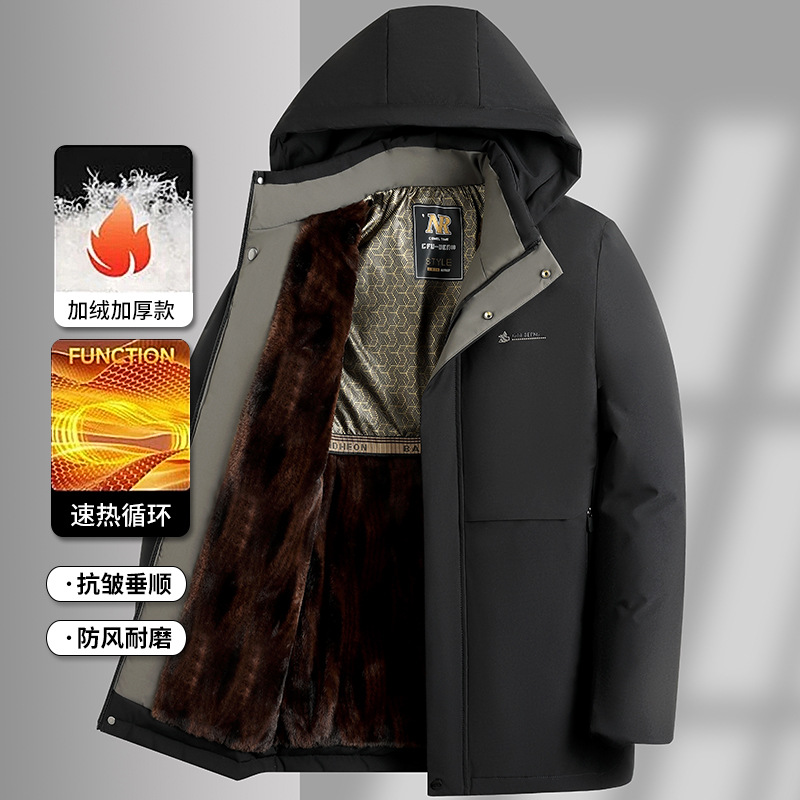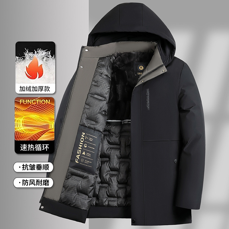 中老年男装棉衣加绒加厚中长款外套冬季爷爷棉服连帽大衣保暖棉袄