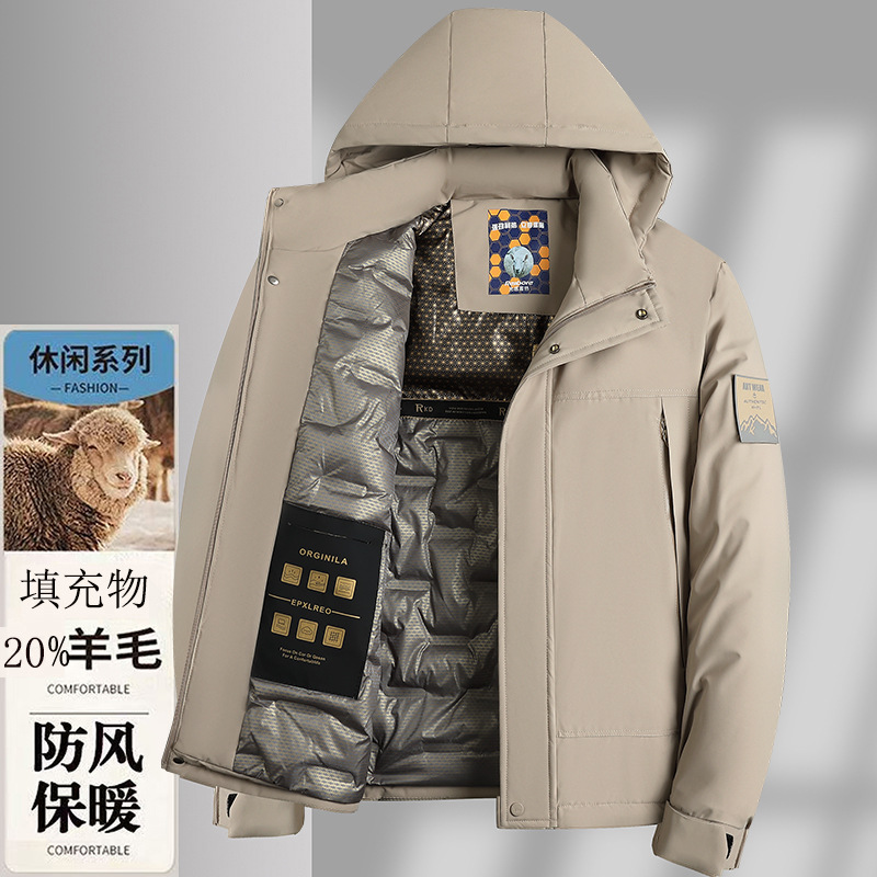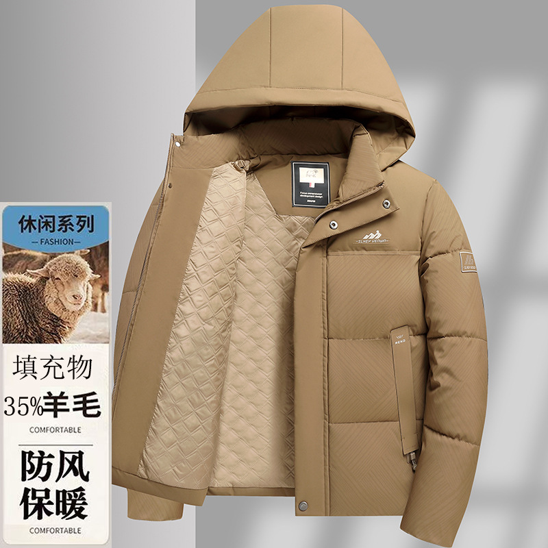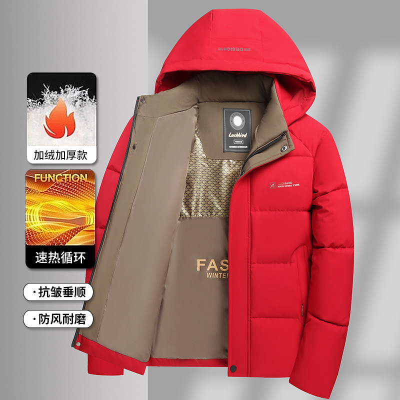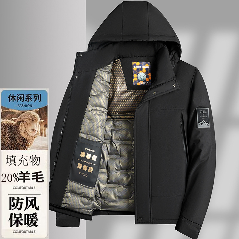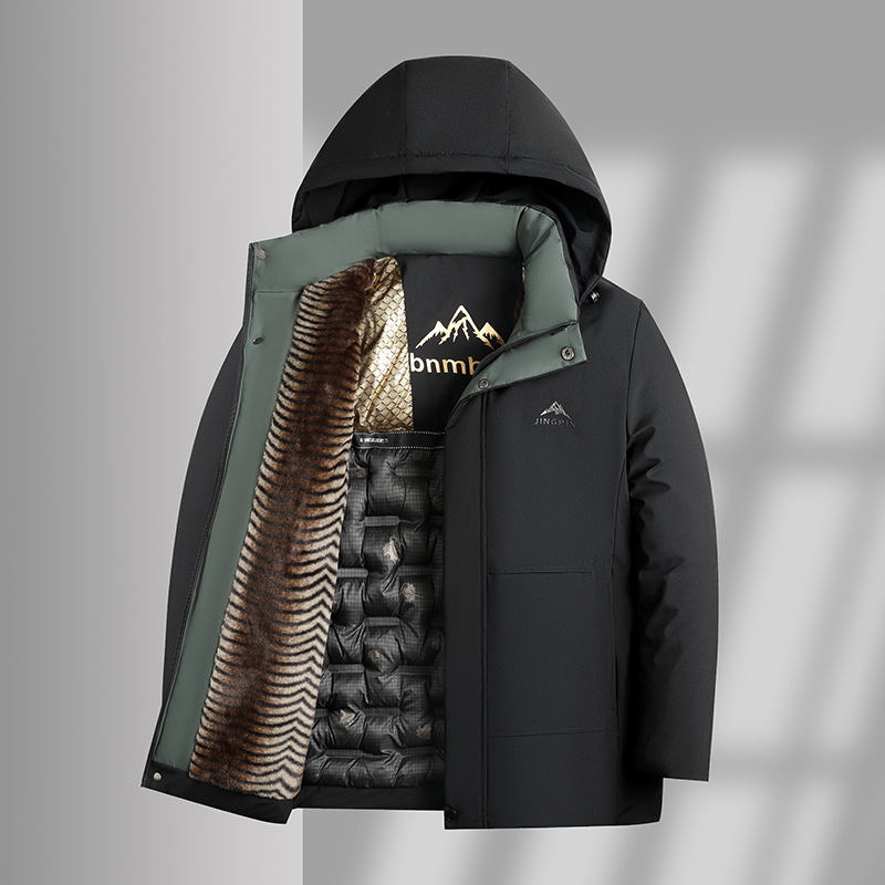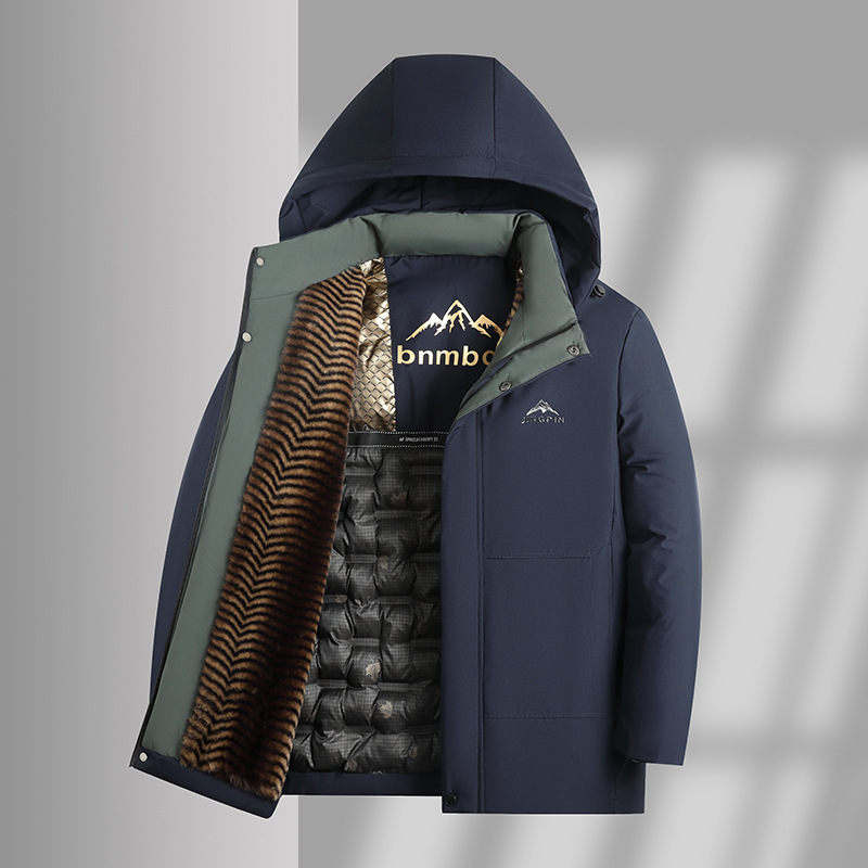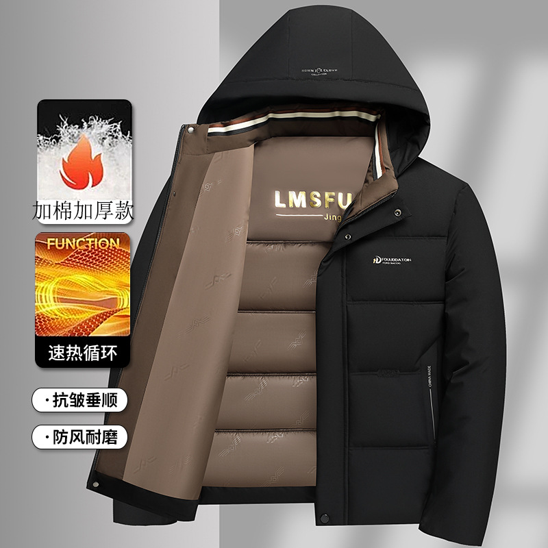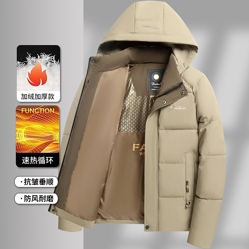 中老年男装棉衣加绒加厚中长款外套冬季爷爷棉服连帽大衣保暖棉袄