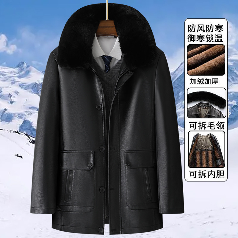 中老年男装爸爸装皮衣外套加绒加厚冬季皮棉衣老人爷爷冬装皮外套