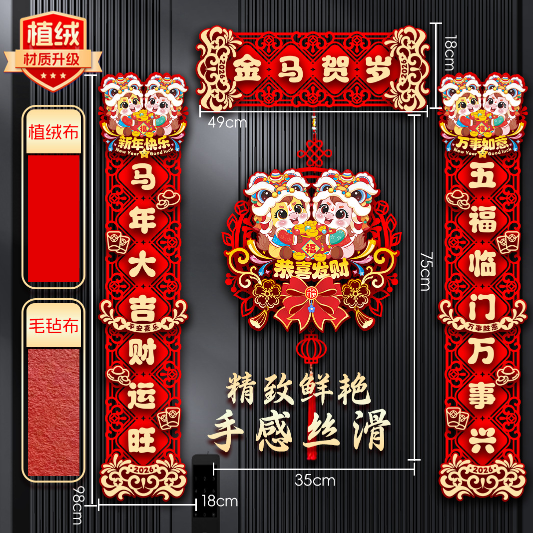(植绒款)马年大吉【对联】+恭喜发财【挂件】