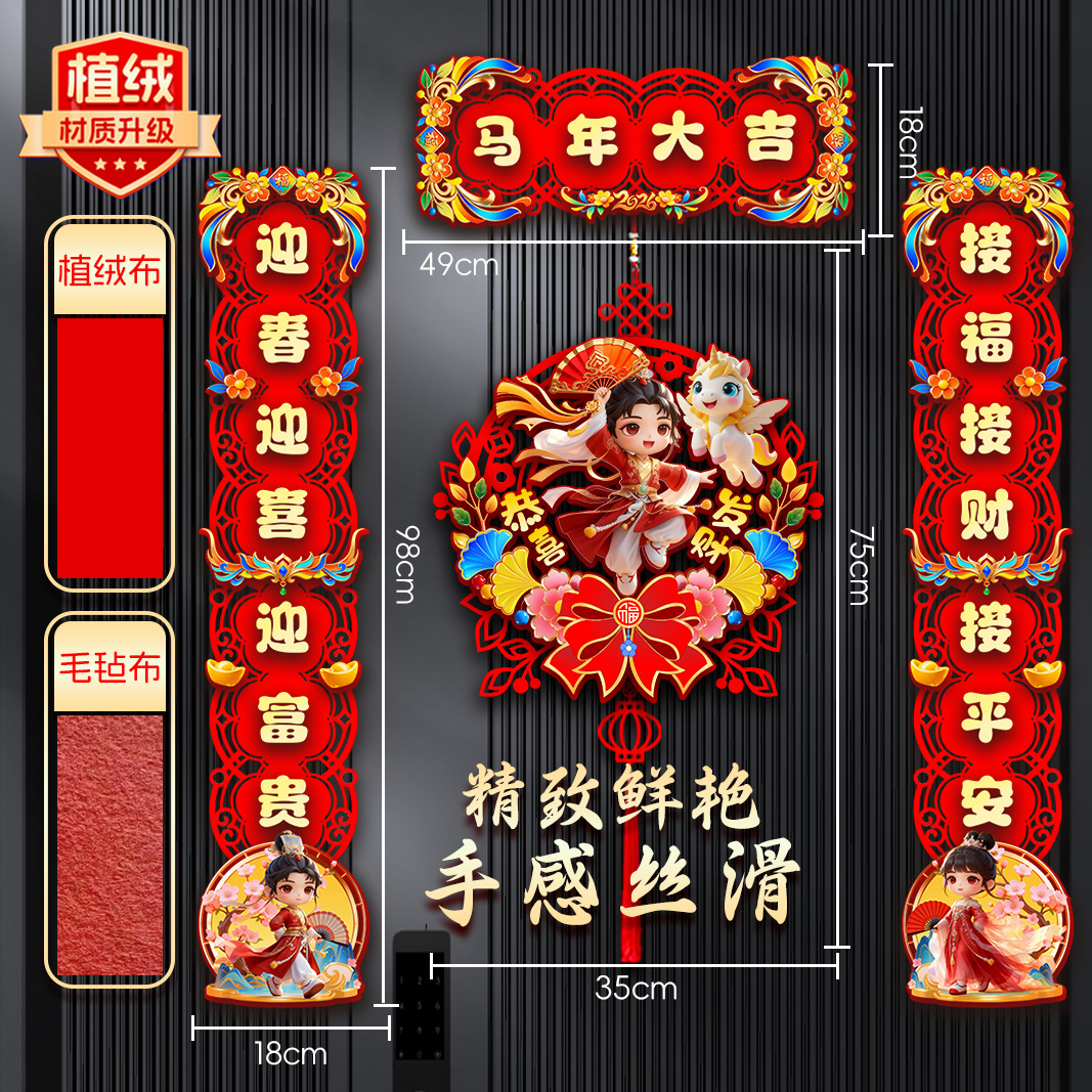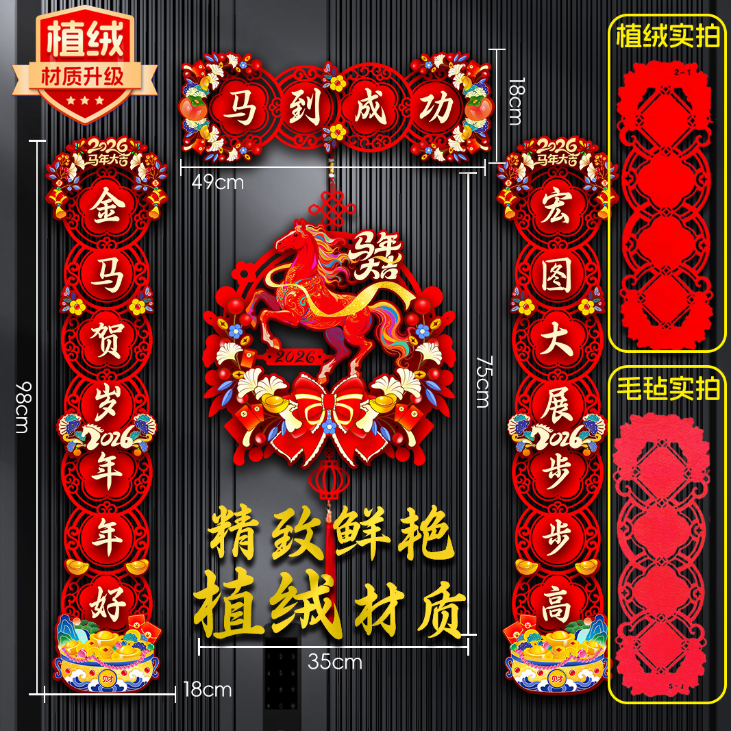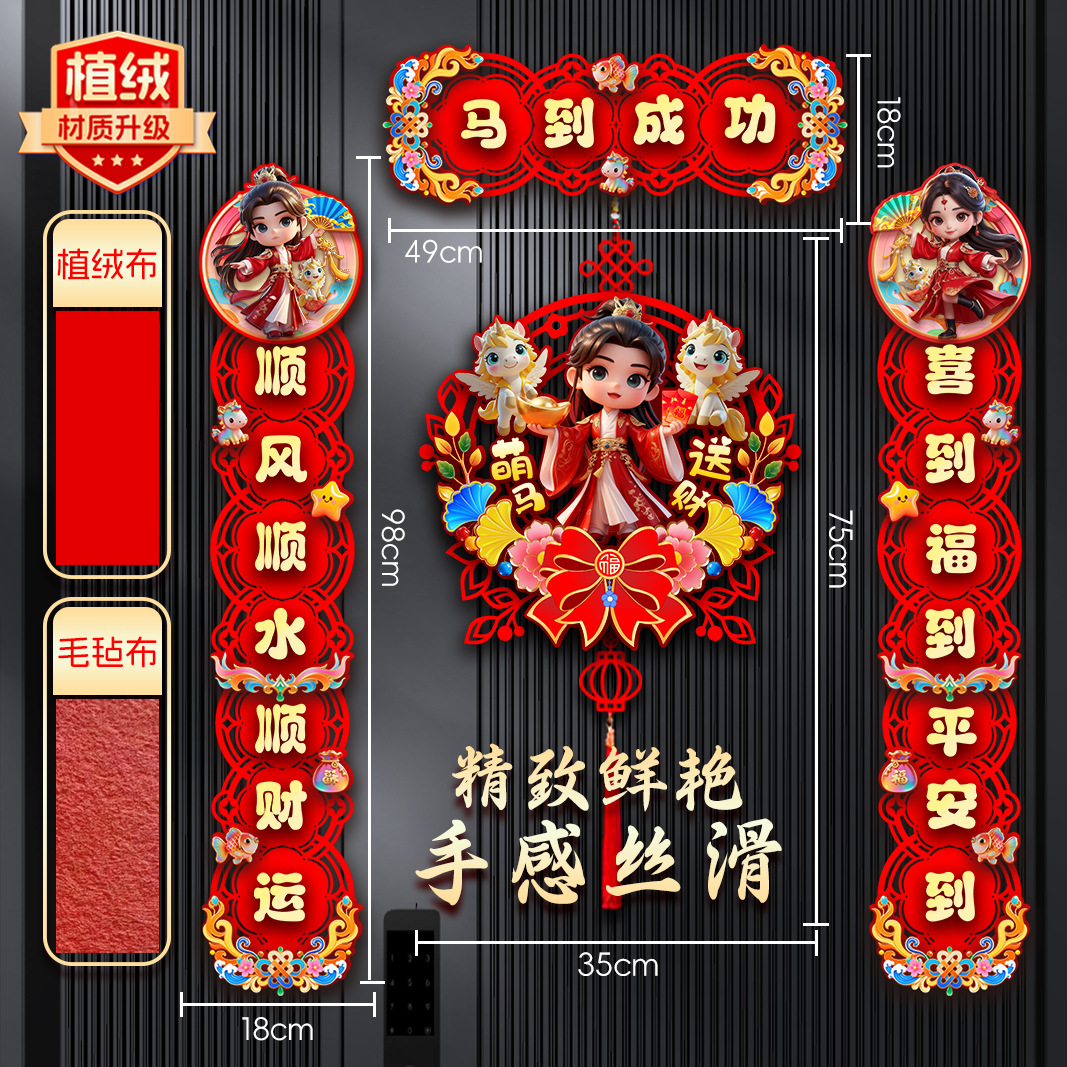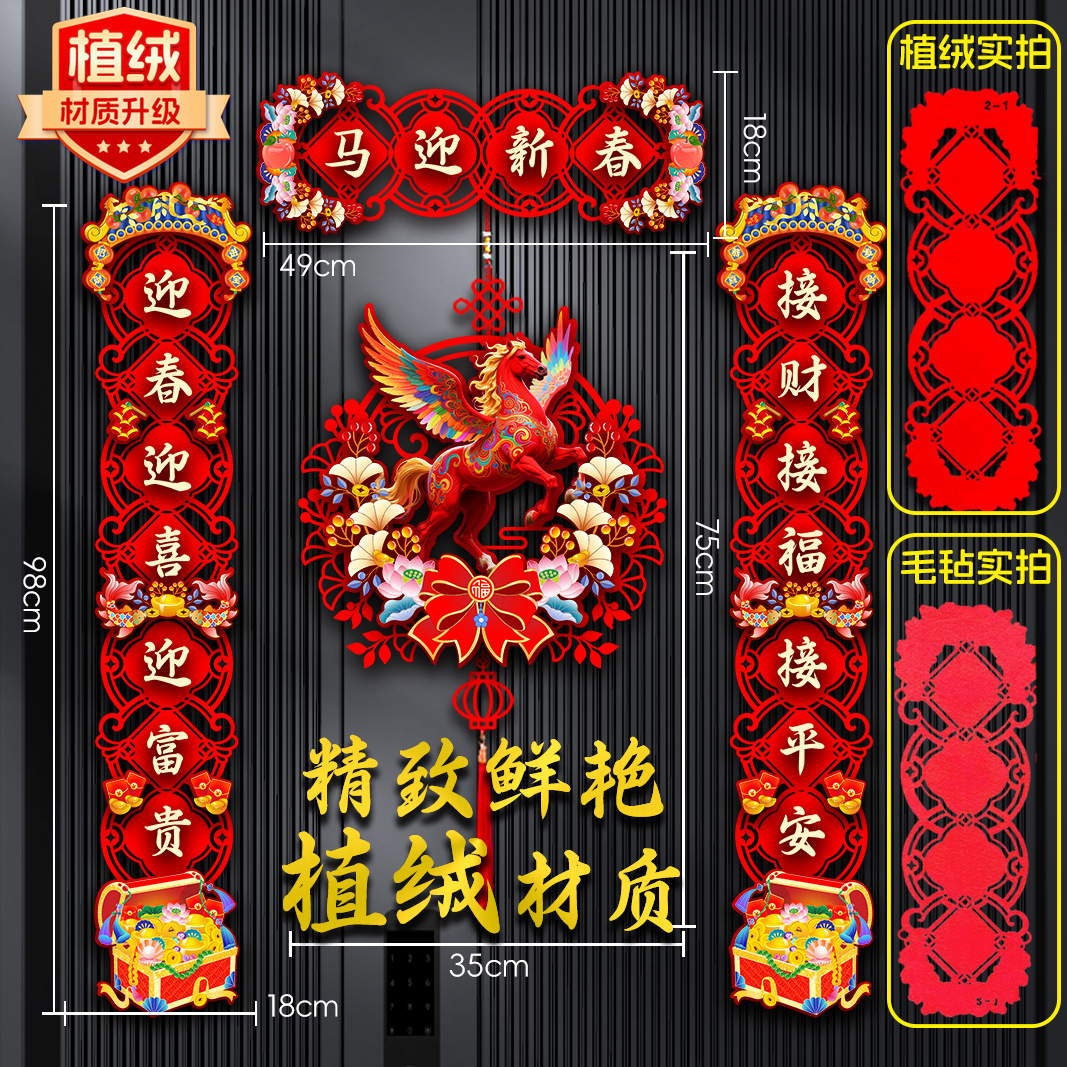(植绒款)马迎新春【对联】+飞马送福【挂件】