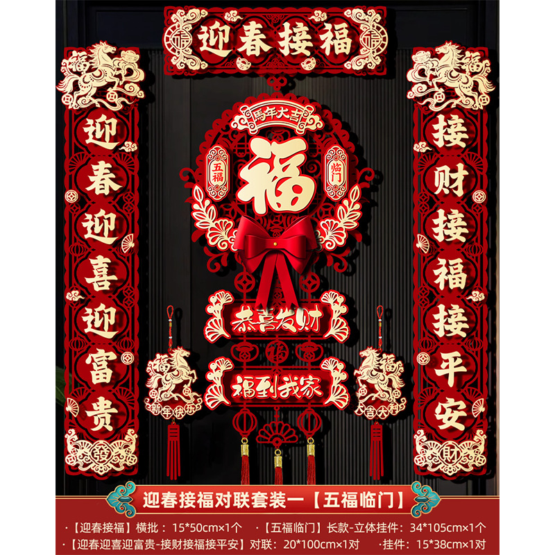 金马迎春对联套装一【五福临门】