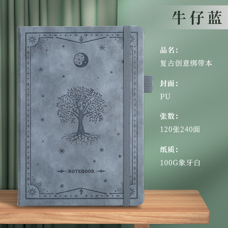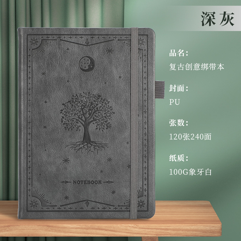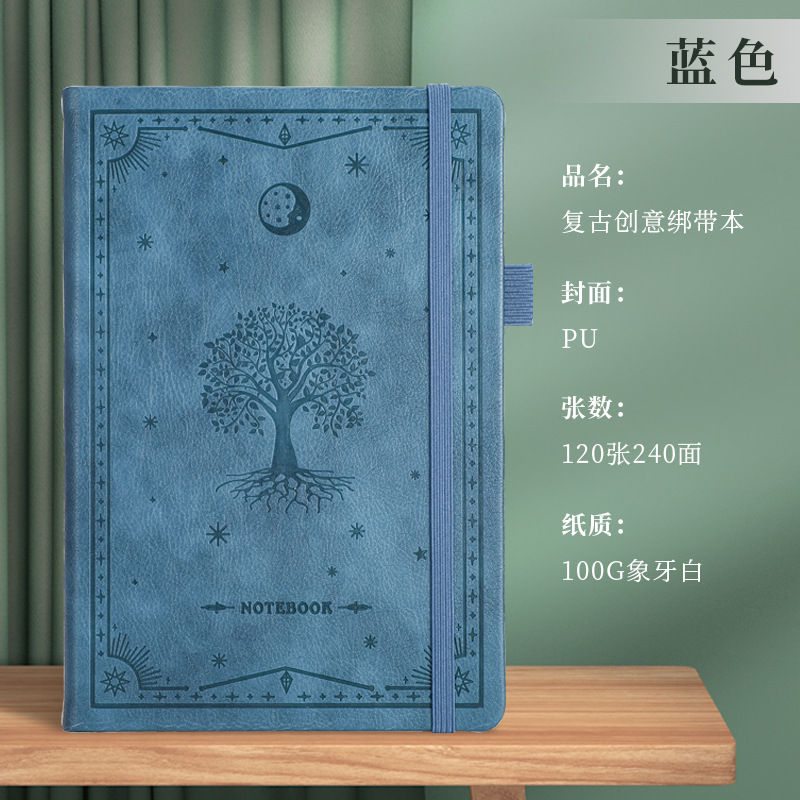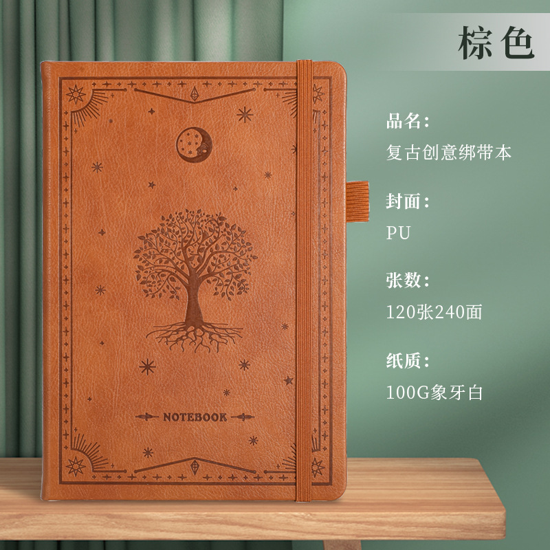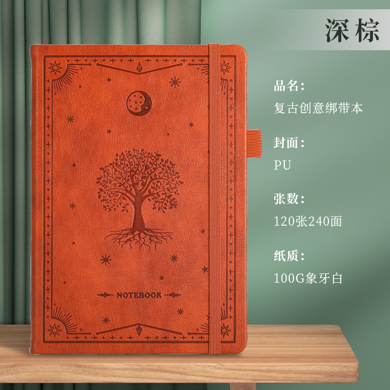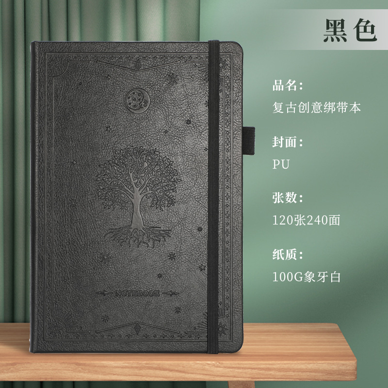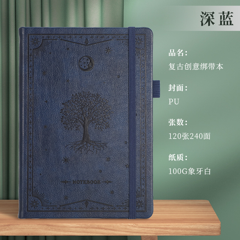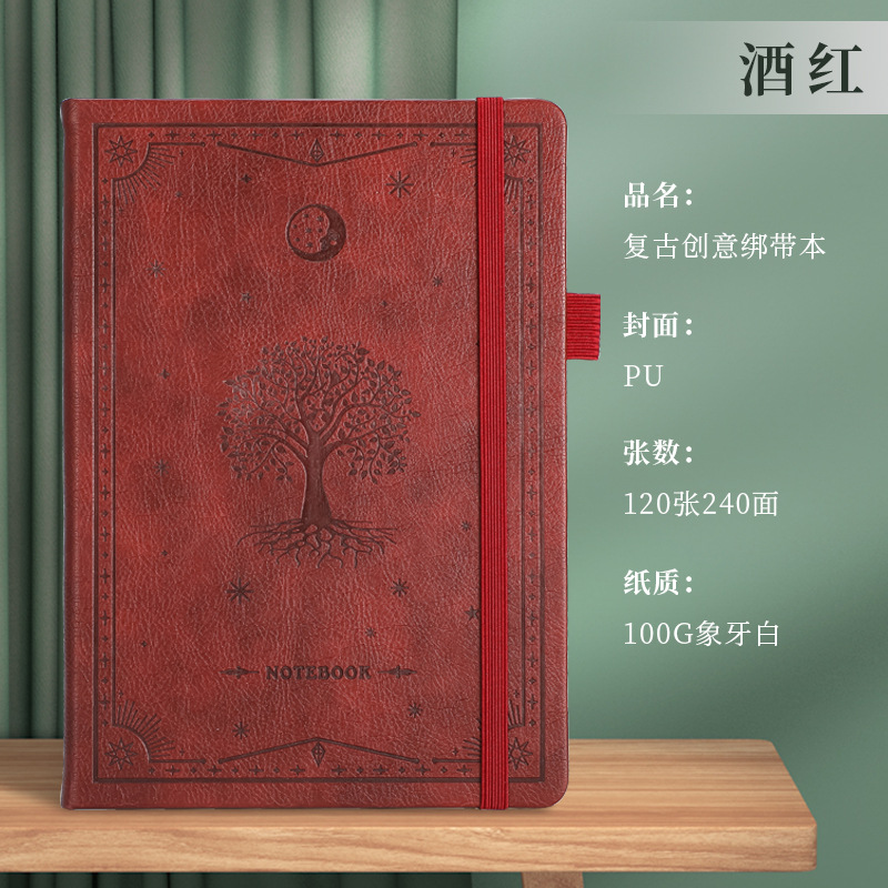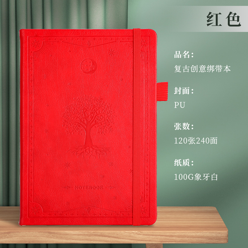 A5商务绑带记事本定制logo皮面压花笔记本加厚跨境腰封本子便携式