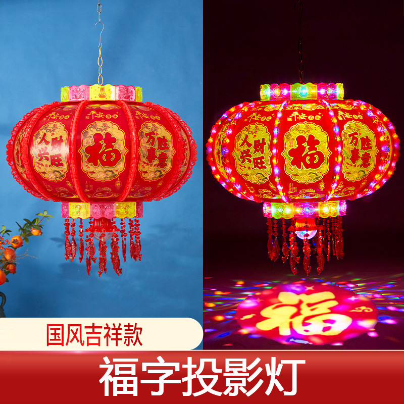 七彩旋转灯笼LED走马灯水晶福字装饰灯阳台走廊乔迁春节新年灯笼
