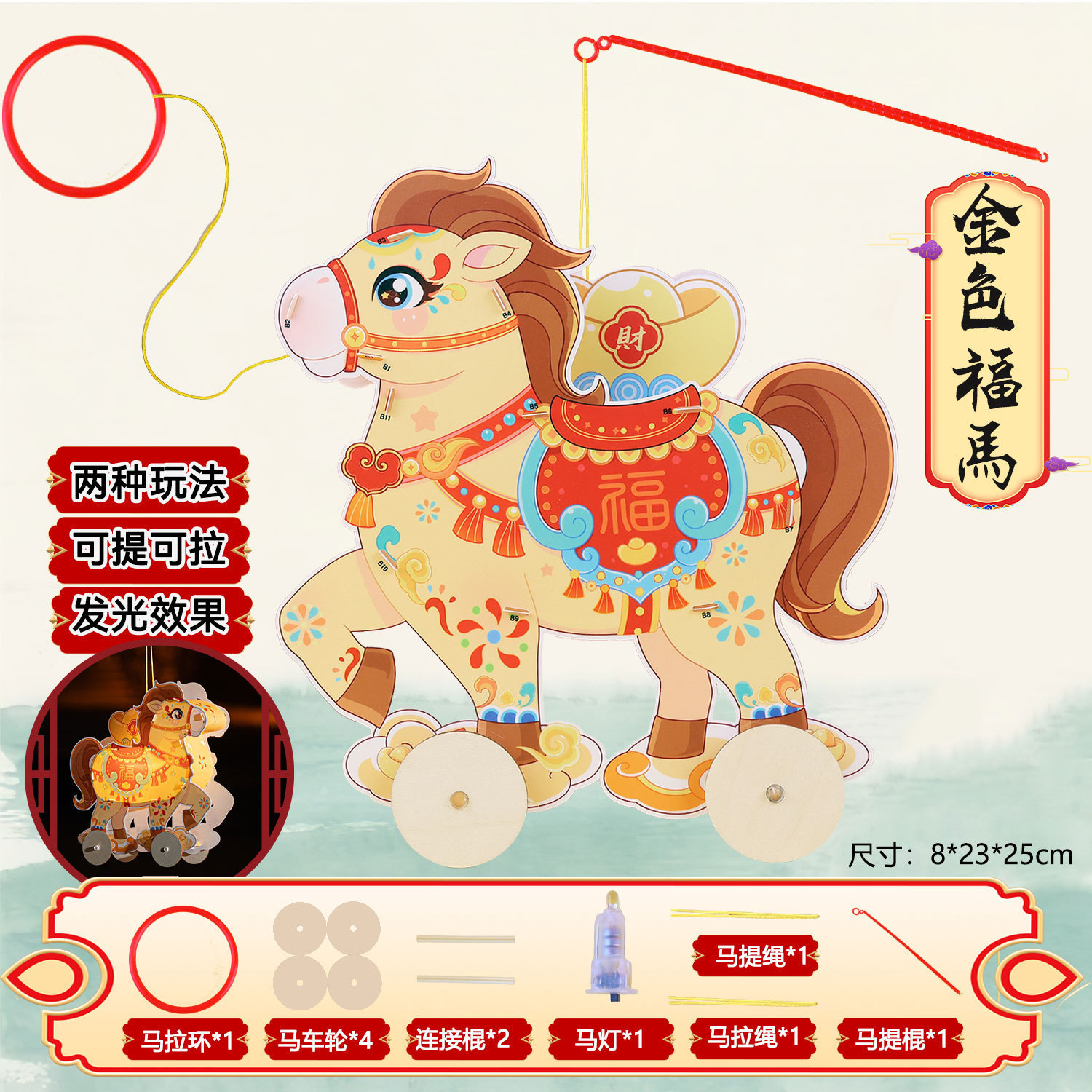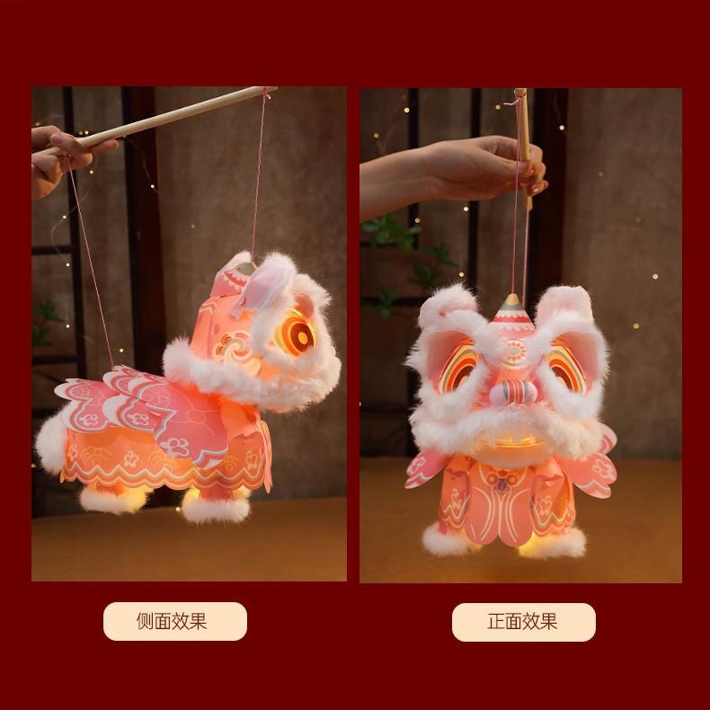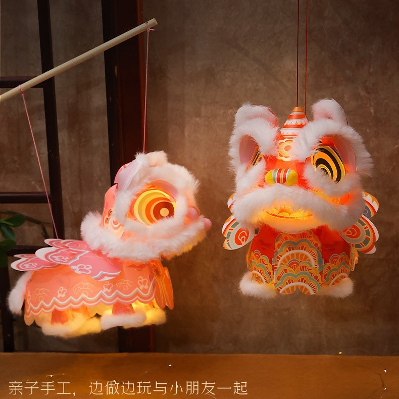 2026马年新款醒狮灯笼手工diy材料包儿童手提发光玩具pvc防水材质