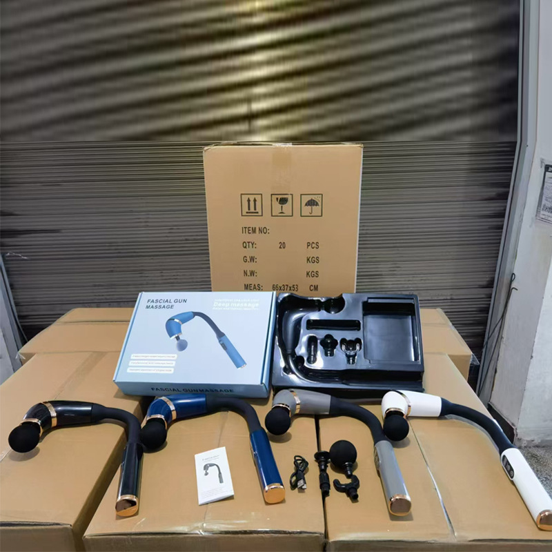 跨境新款弯头按摩器放松肌肉颈椎筋膜枪背腿部智能震动按摩抢电动
