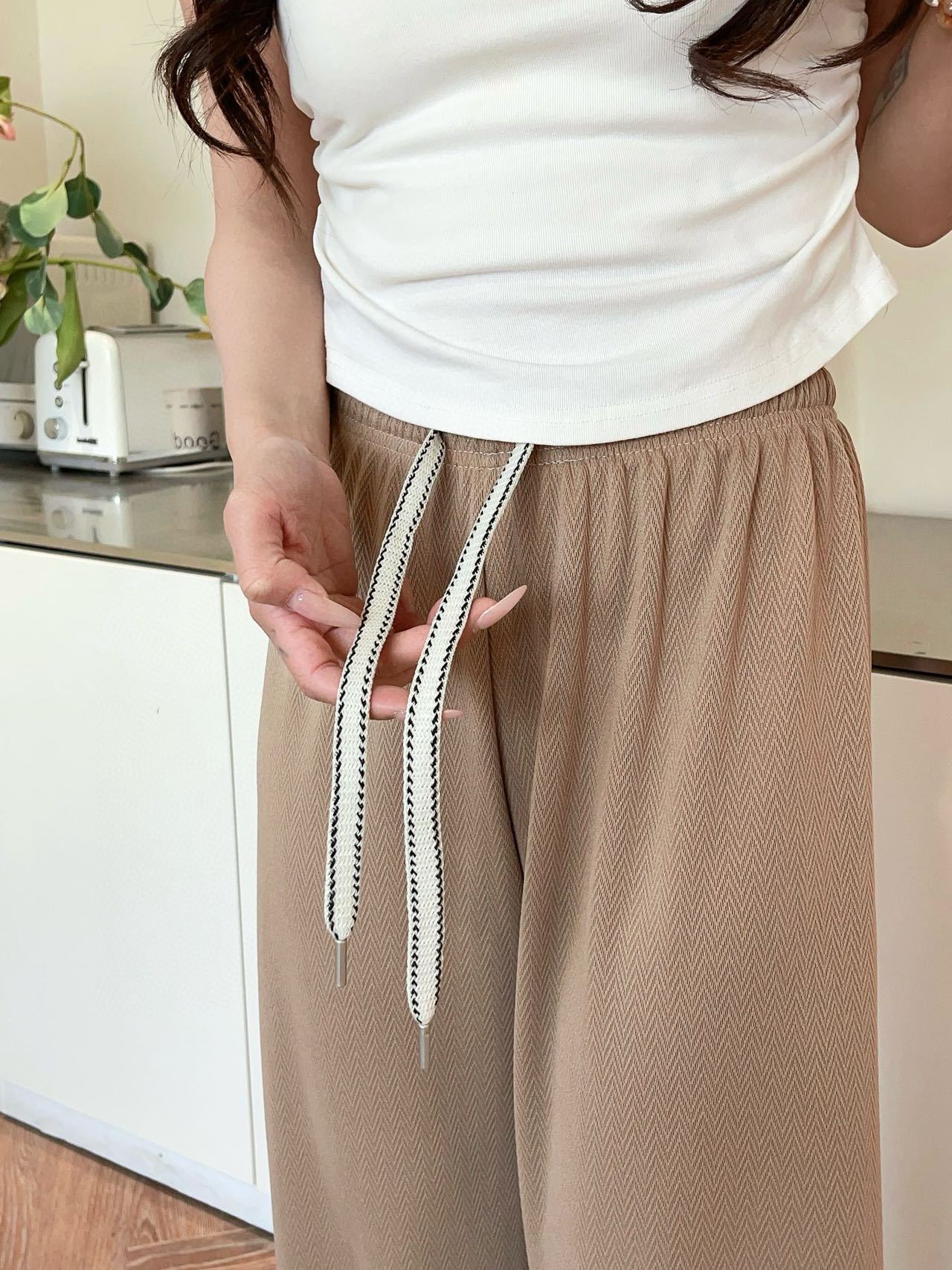人字纹阔腿裤女夏季2025新款高腰休闲直筒裤显瘦垂感拖地长裤子