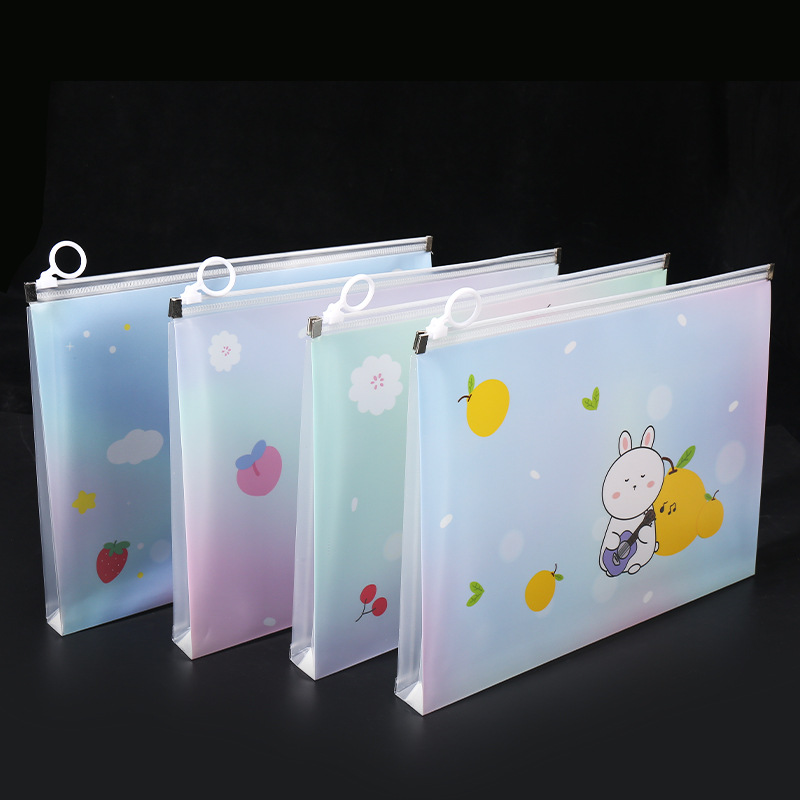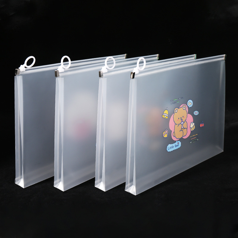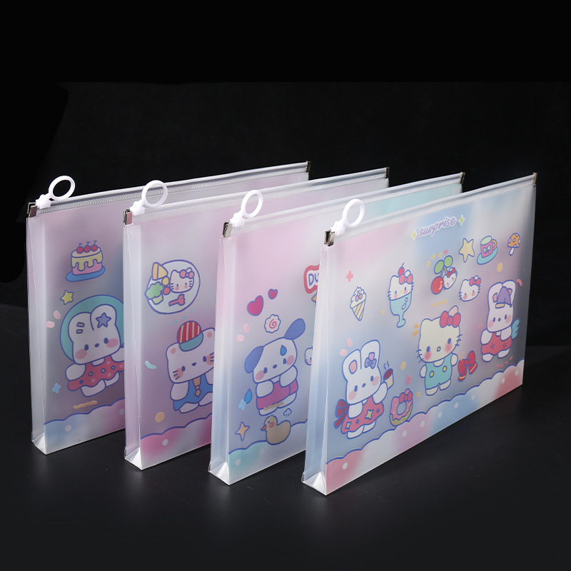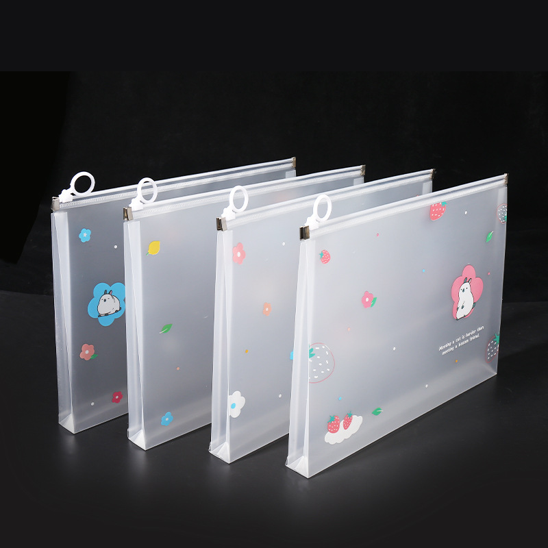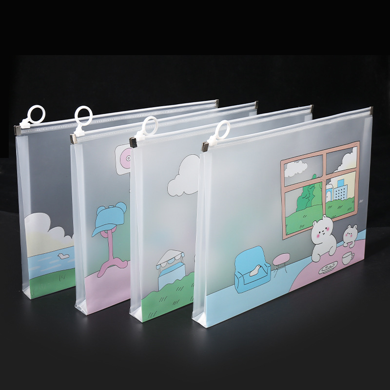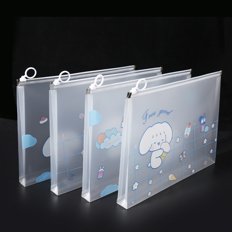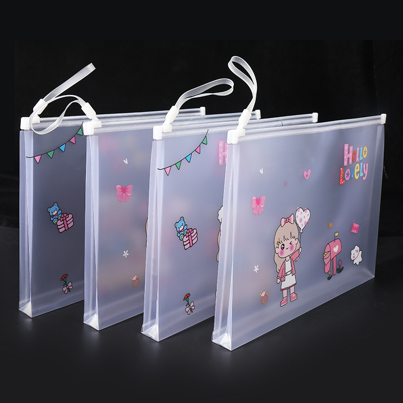 透明a4文件袋资料袋塑料pp学生试卷收纳袋可爱卡通图案拉链袋批发