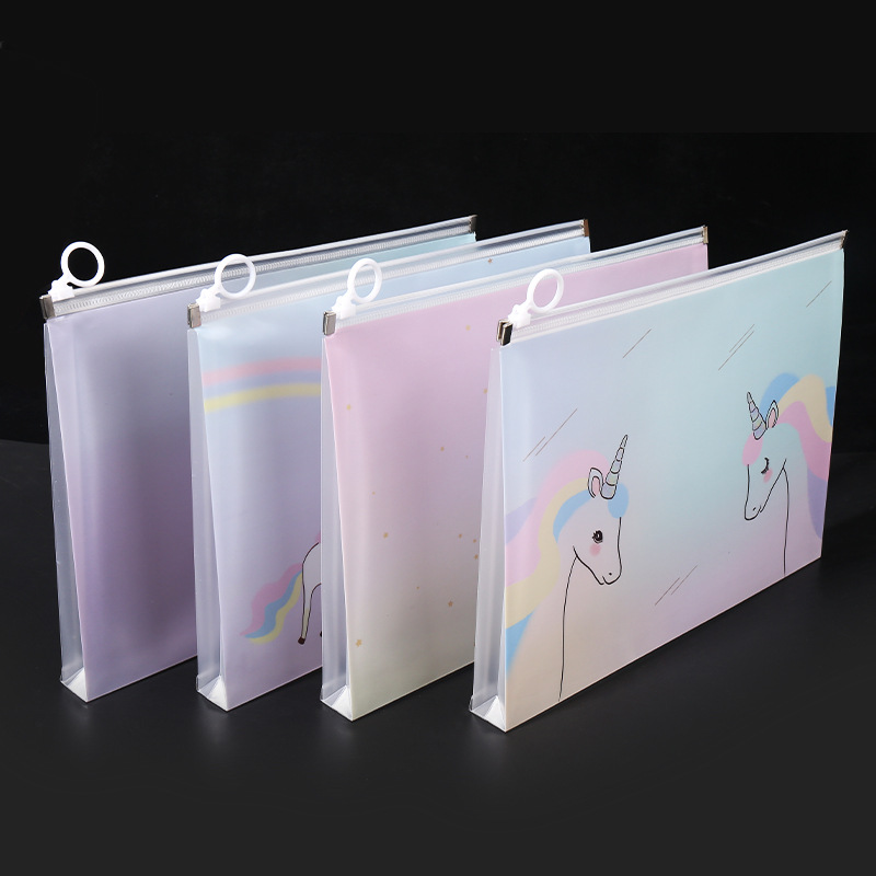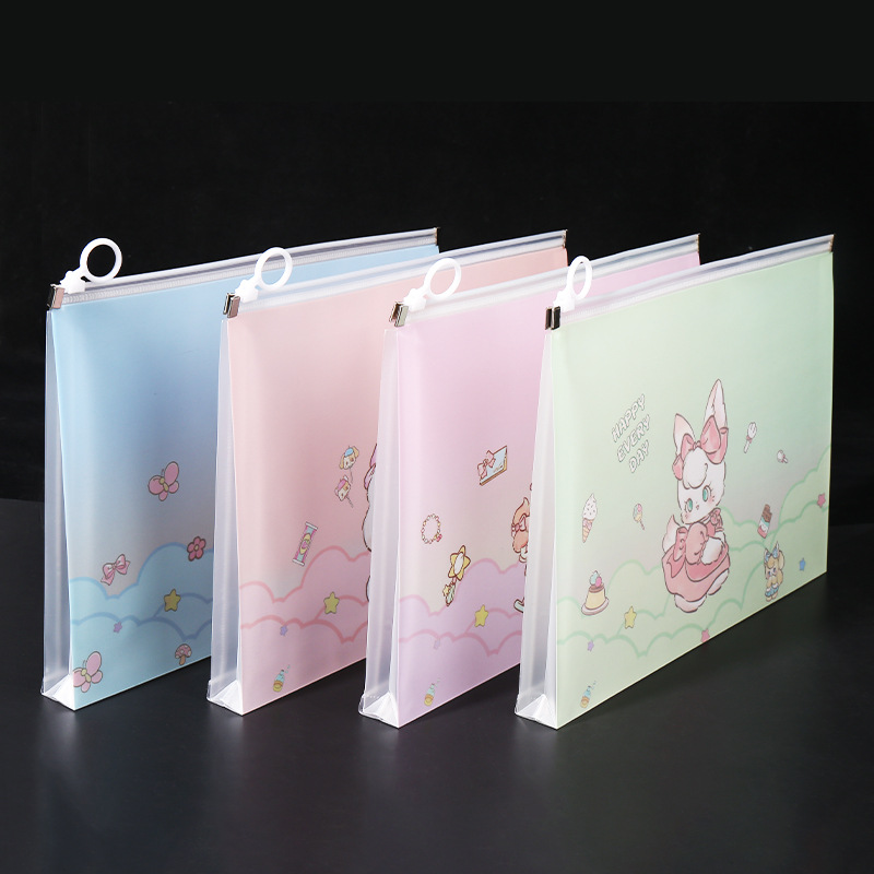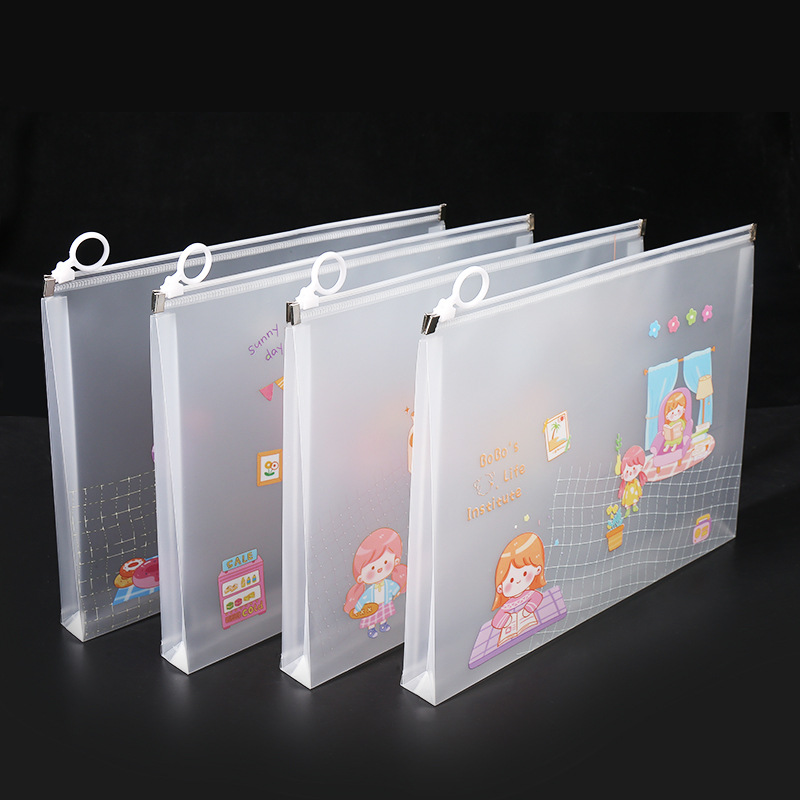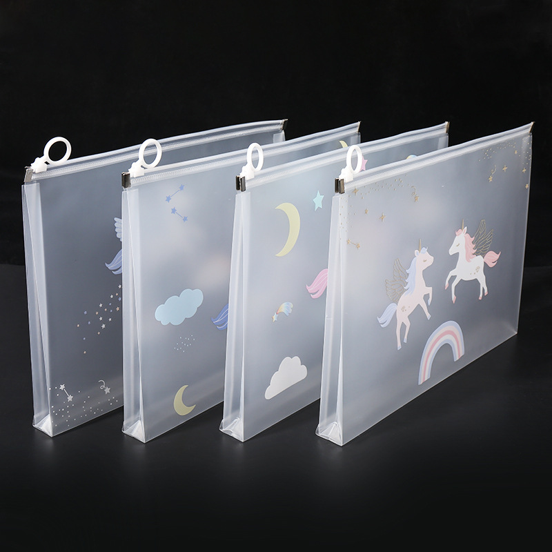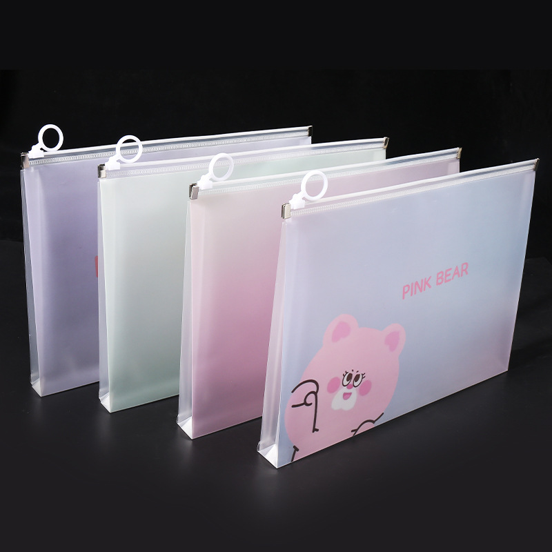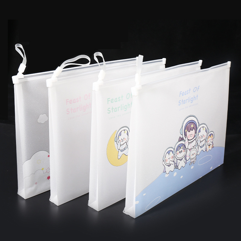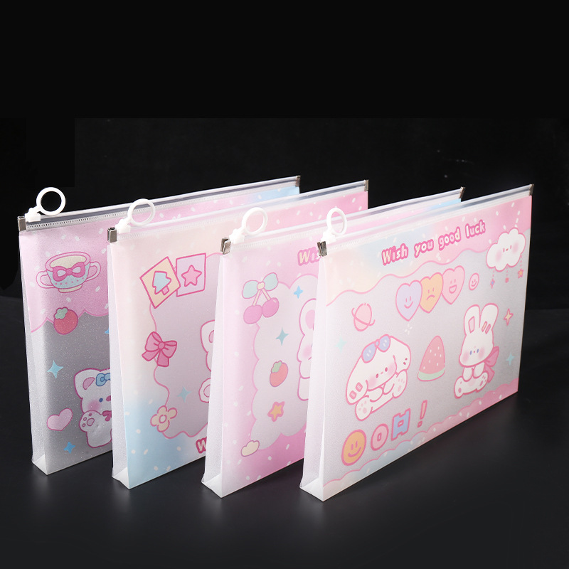 透明a4文件袋资料袋塑料pp学生试卷收纳袋可爱卡通图案拉链袋批发