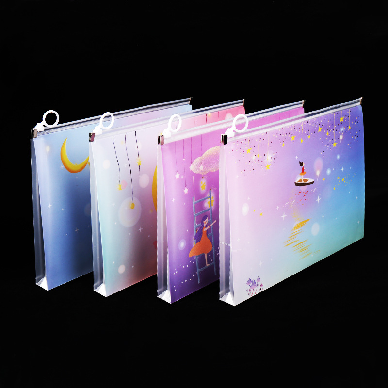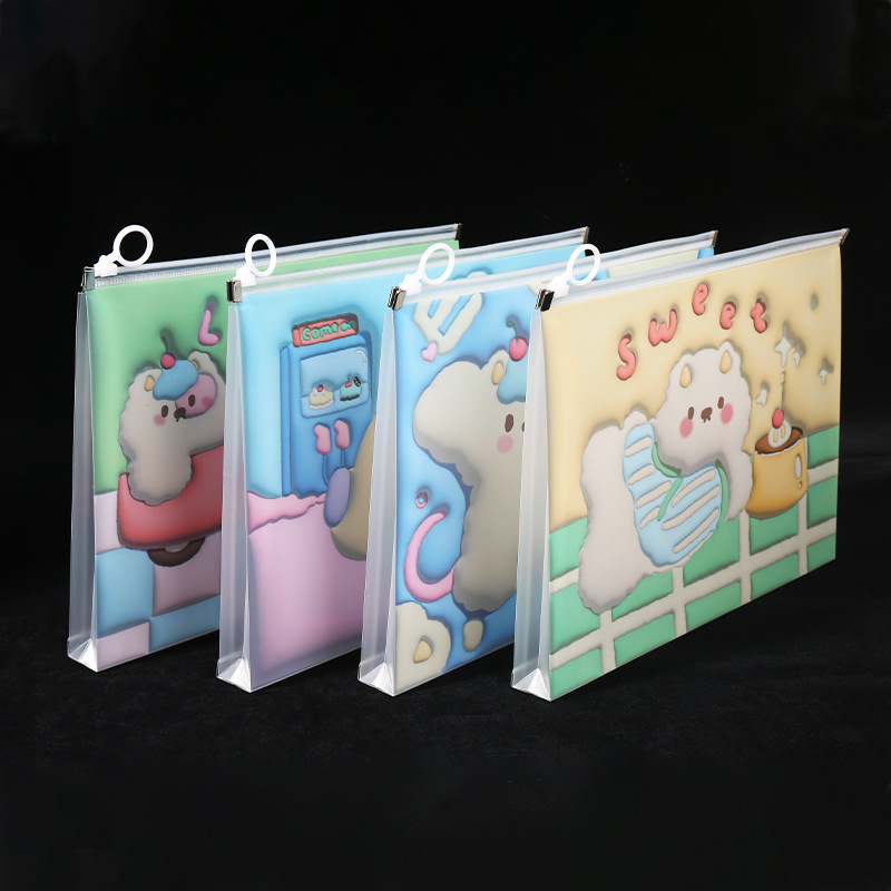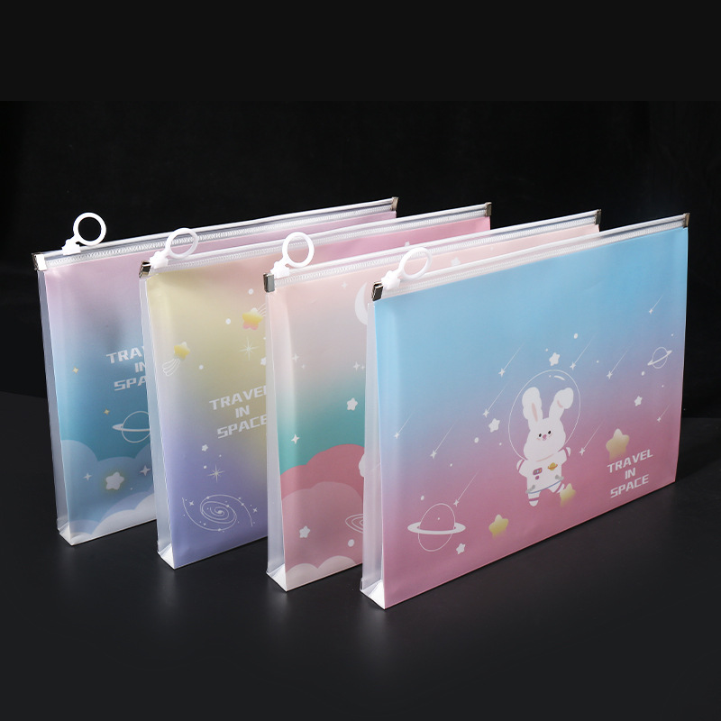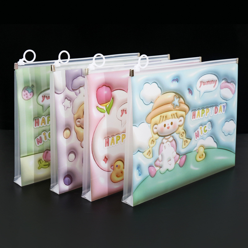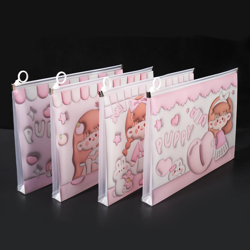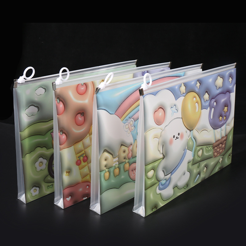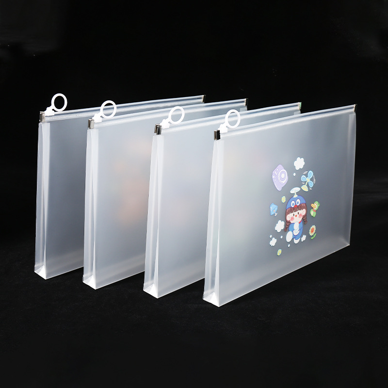 透明a4文件袋资料袋塑料pp学生试卷收纳袋可爱卡通图案拉链袋批发