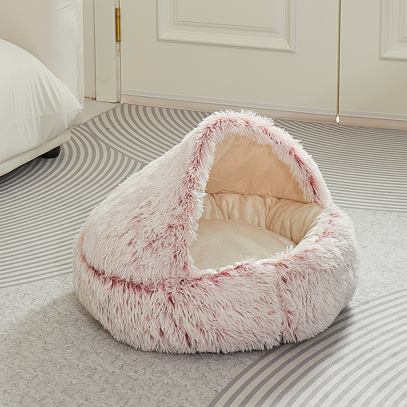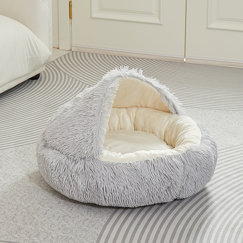 长毛绒猫窝四季通用半封闭式猫床冬季保暖狗窝猫咪睡觉贝壳窝批发