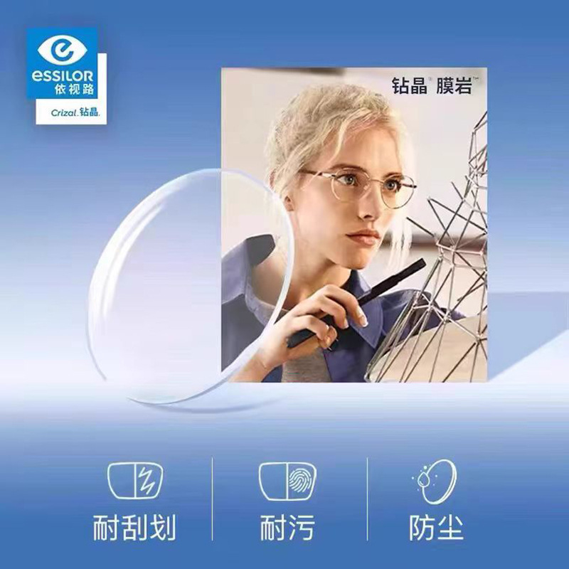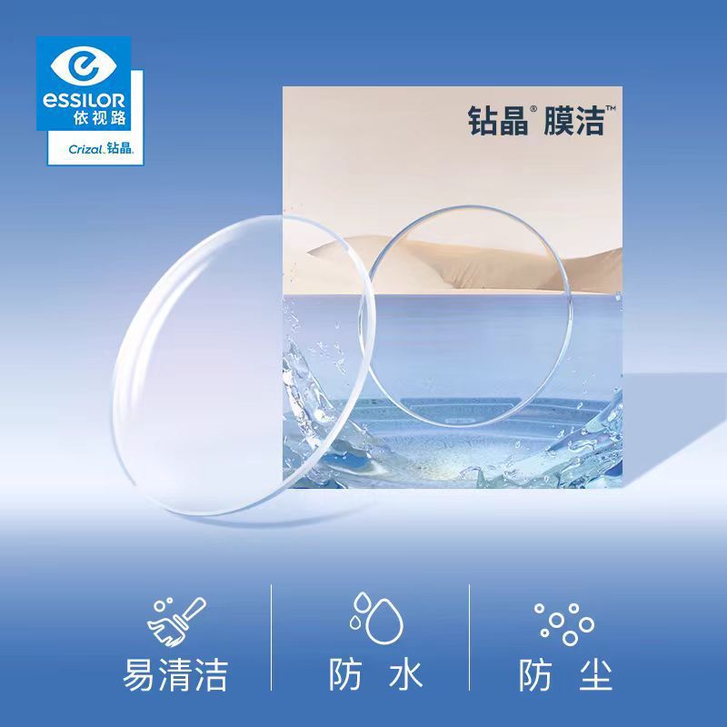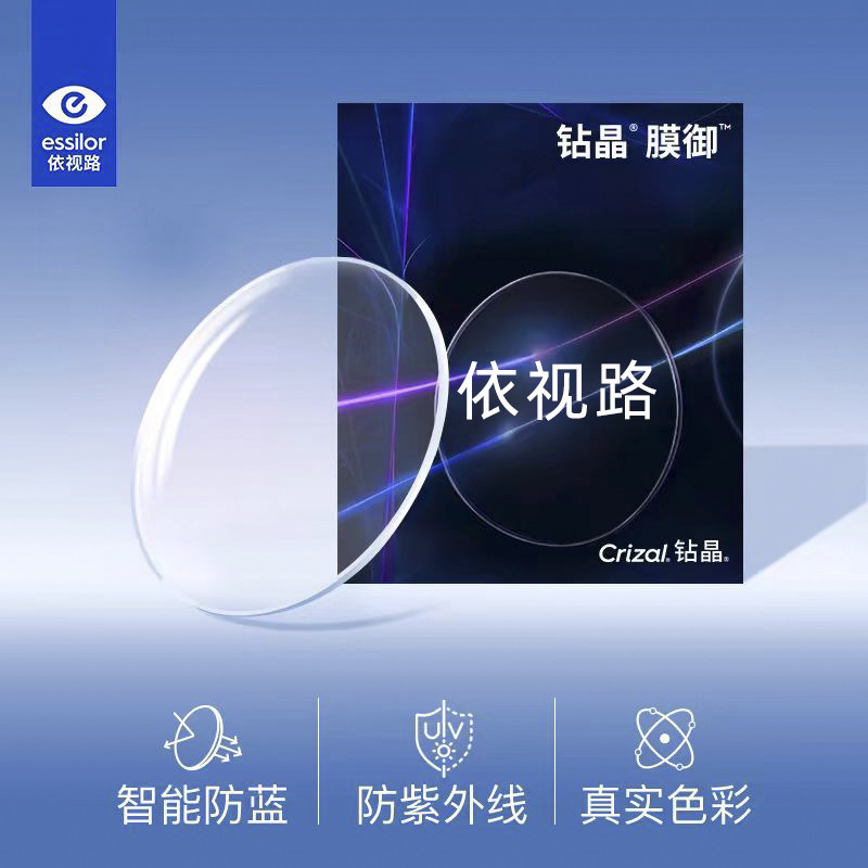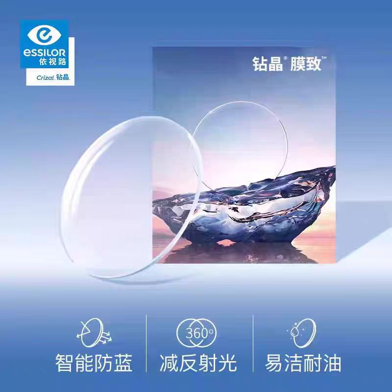 正品依视路钻晶膜岩镜片膜洁超薄膜致膜御防蓝光高清树脂近视镜片