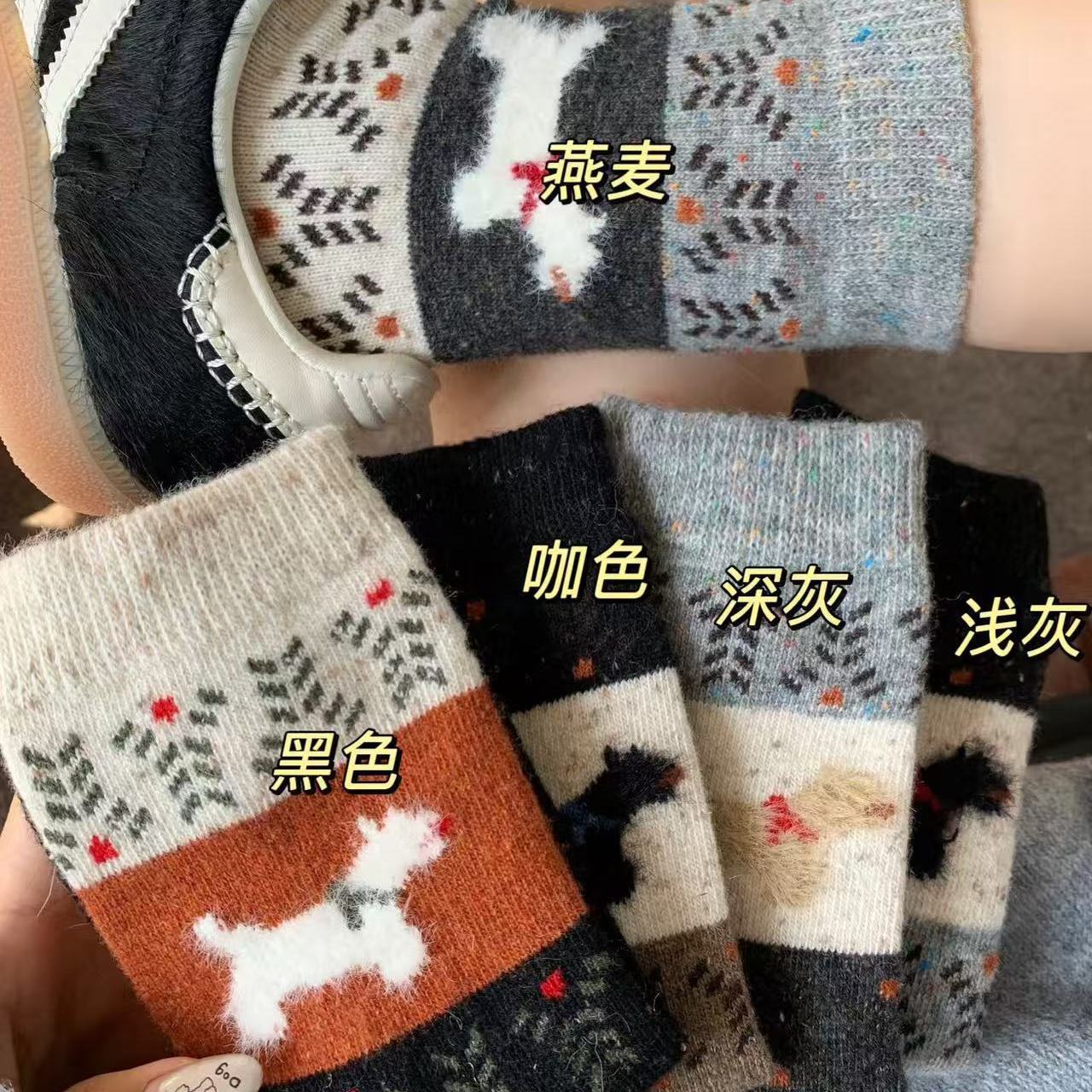 费尔岛复古氛围撞色狗狗日系秋冬毛绒可爱袜子女韩系中筒袜ins潮