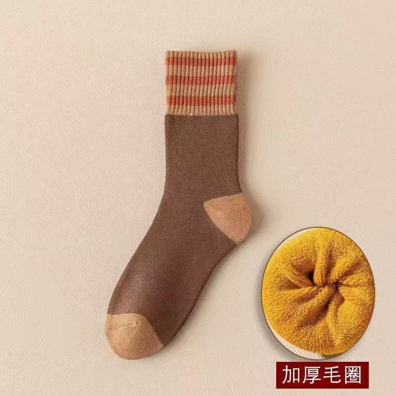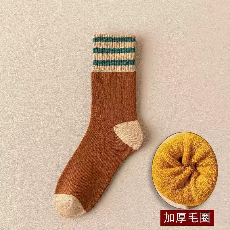 批发毛圈袜子女秋冬季加厚美拉德条纹保暖冬天长袜秋冬款中筒袜女