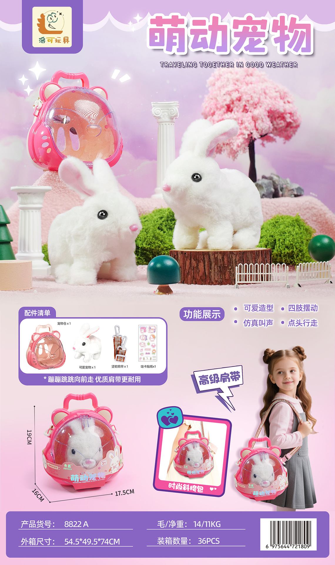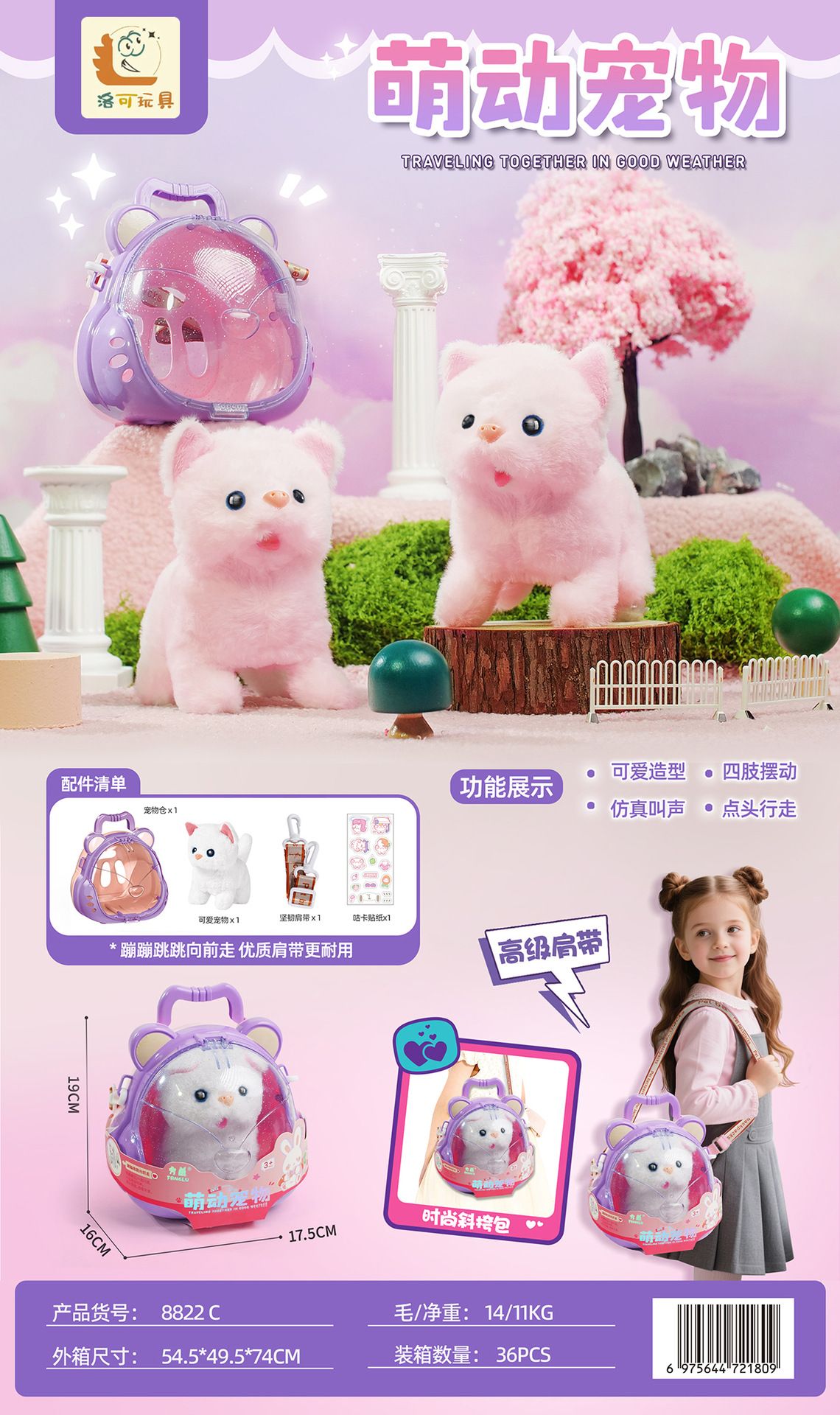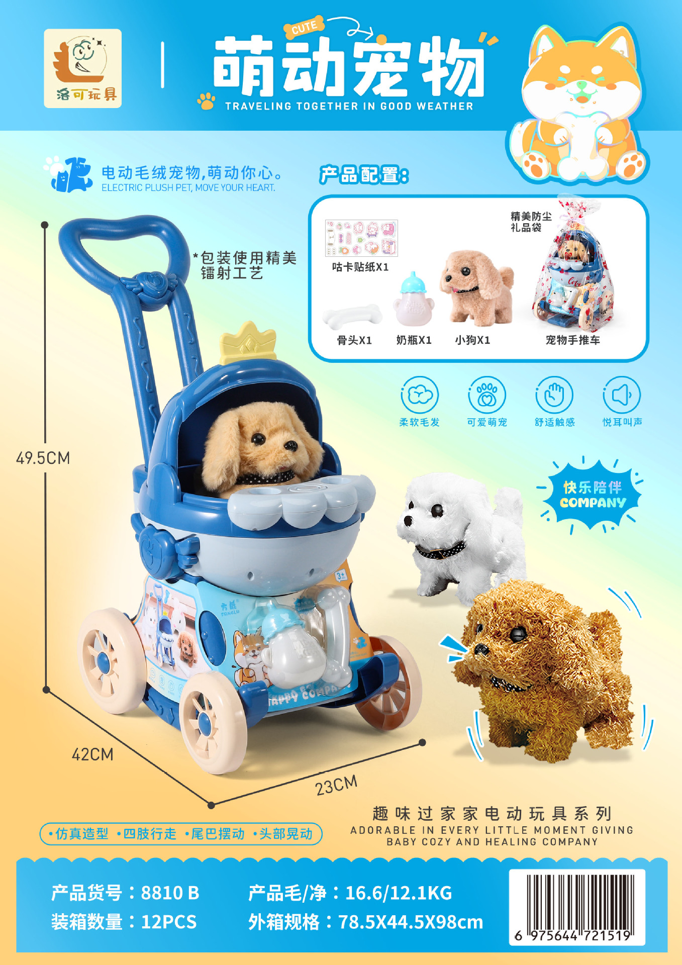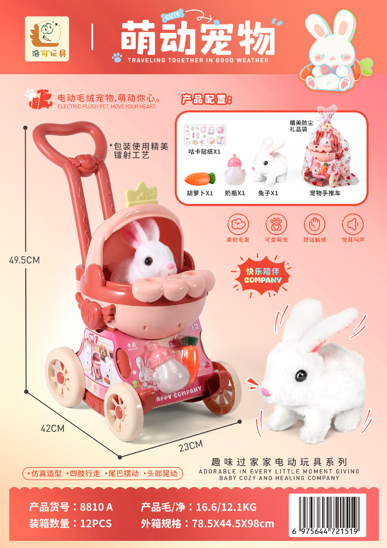 洛可萌动宠物手推车猫咪小兔子狗狗电动迷你过家家机器人儿童玩具