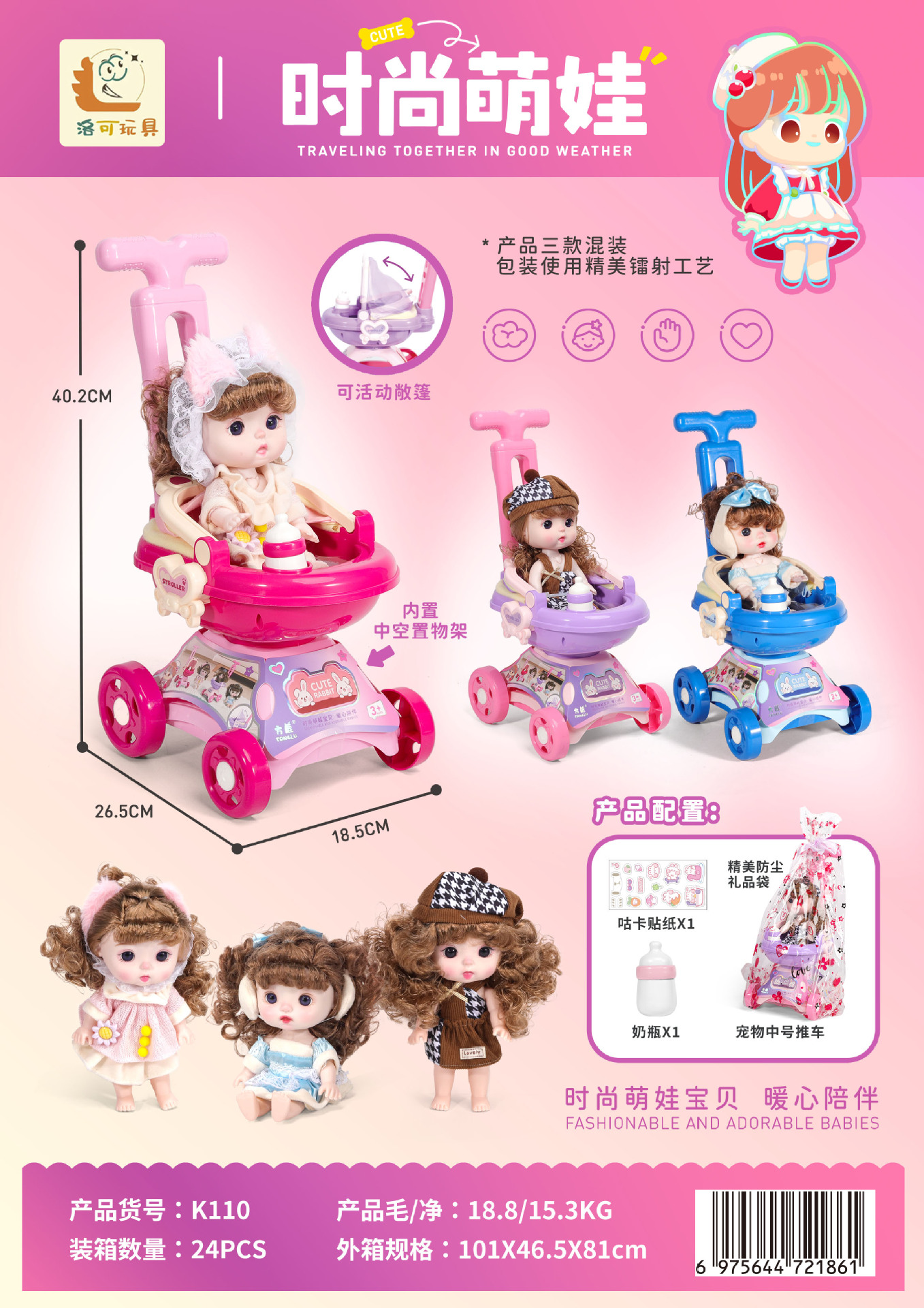 K110时尚萌娃推车【颜色娃娃随机】