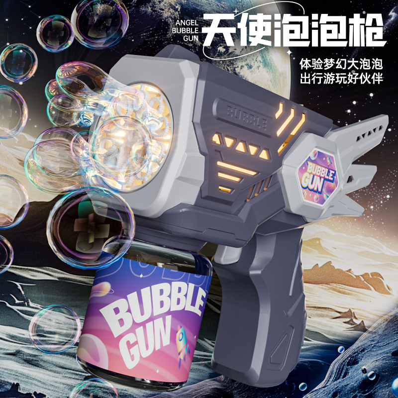 10孔天使泡泡枪(天空灰—袋装)带灯光+配1瓶泡泡水