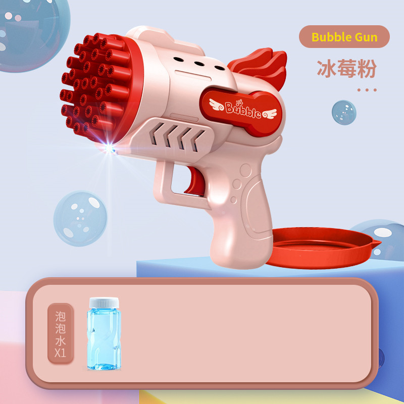 10孔天使泡泡枪(粉色—袋装)带灯光+配1瓶泡泡水