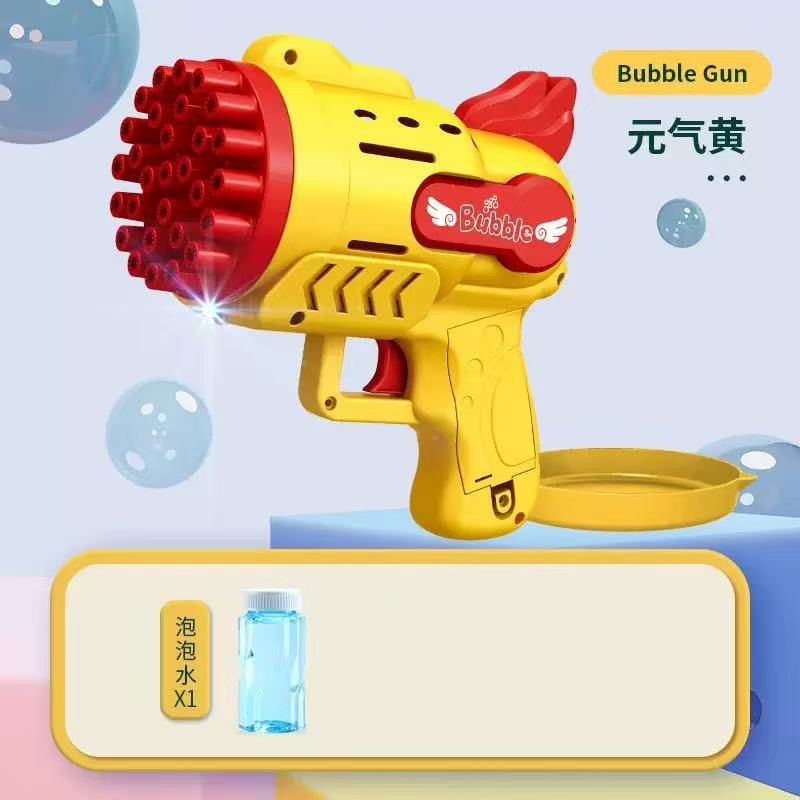 10孔拼色泡泡枪(黄绿色—袋装)带灯光+配1瓶泡泡水
