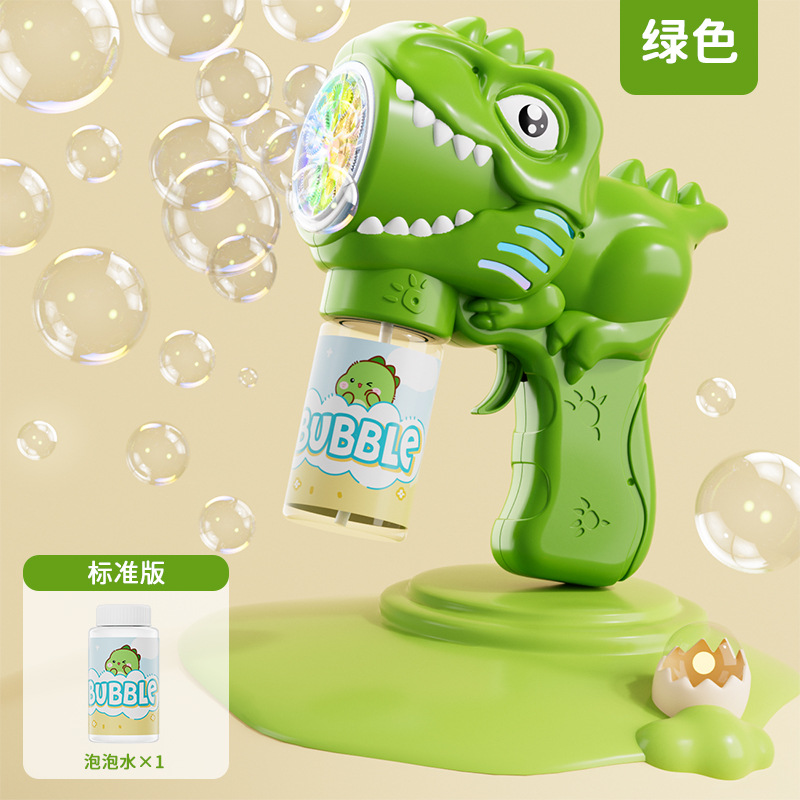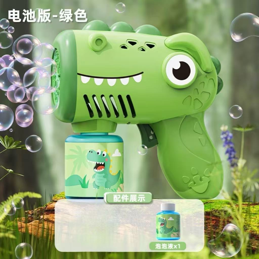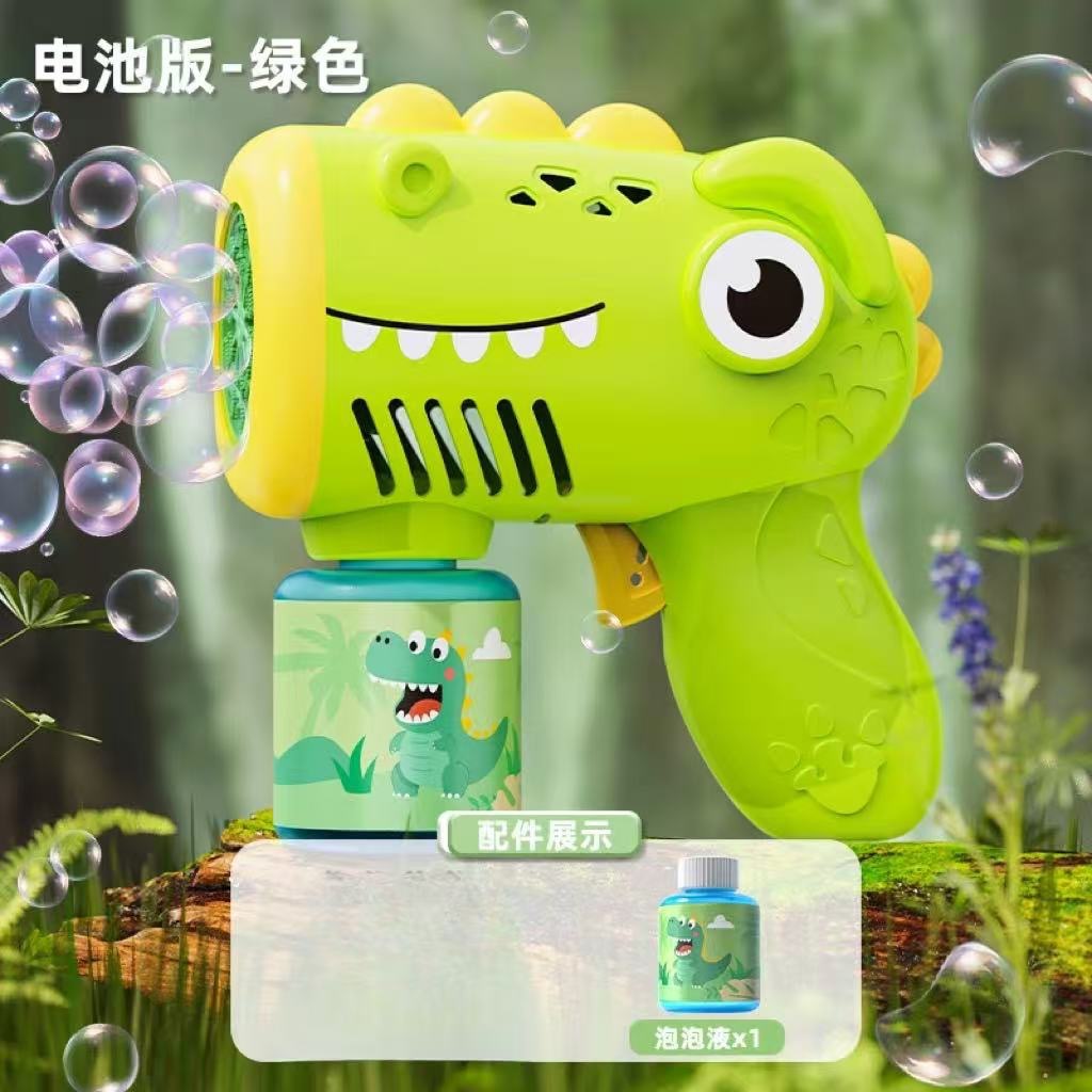 6孔恐龙泡泡枪(绿色—袋装)带灯光+配1瓶泡泡水