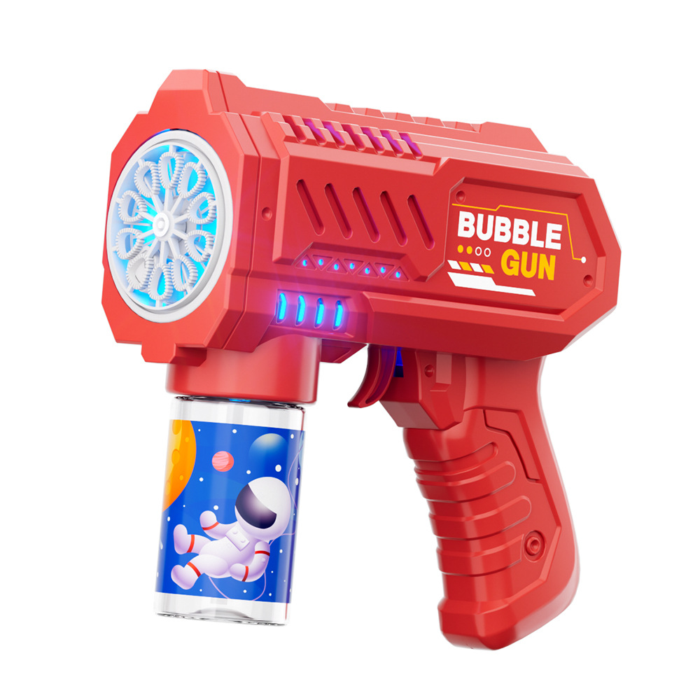 10孔太空泡泡枪(红色—袋装)带灯光+1瓶泡泡水