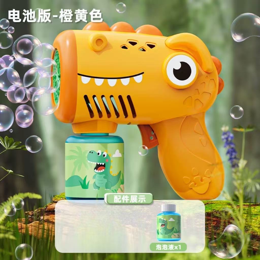 20孔恐龙泡泡枪(橙色—袋装)带灯光+1瓶泡泡水