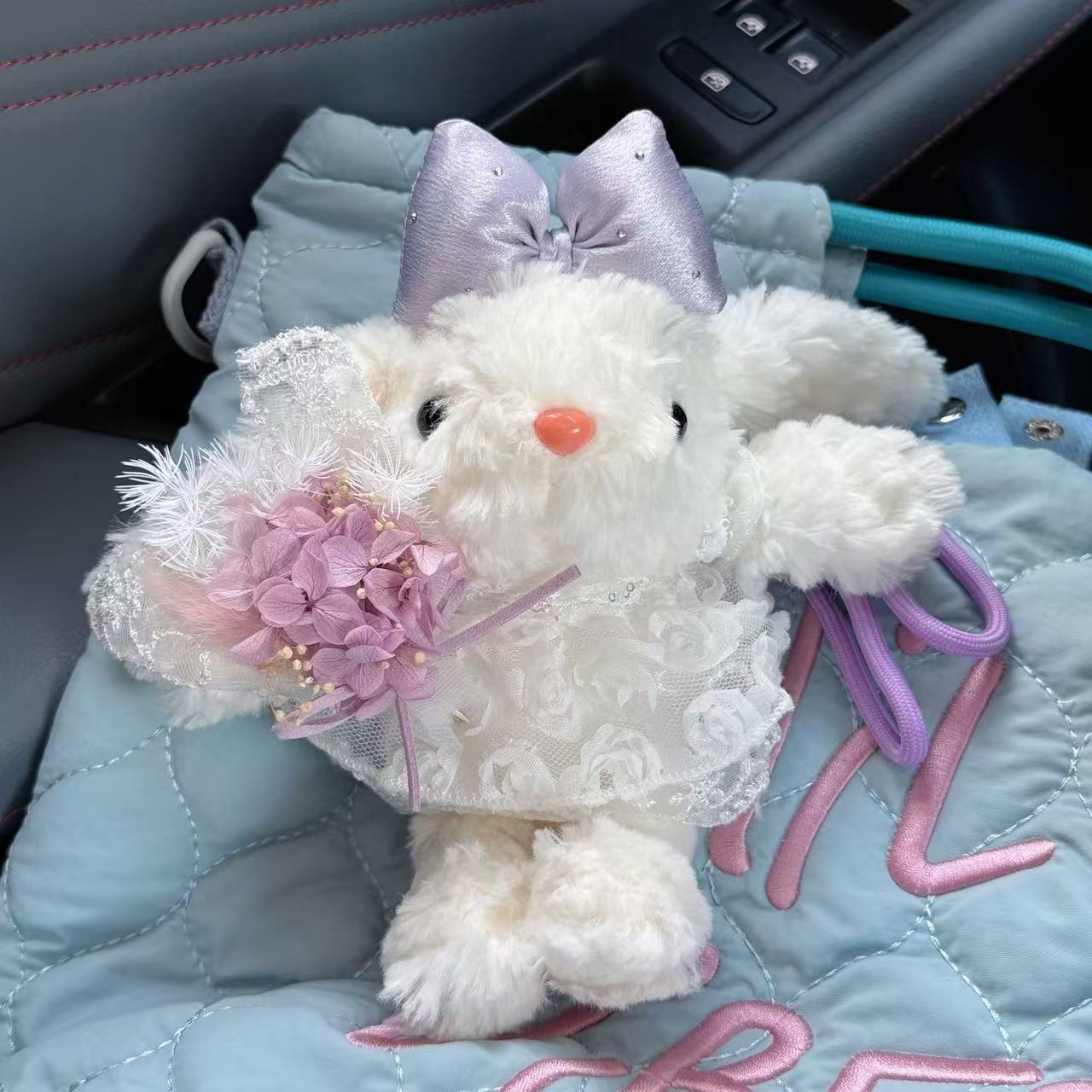 白色裙子抱紫花兔兔(手绳款)