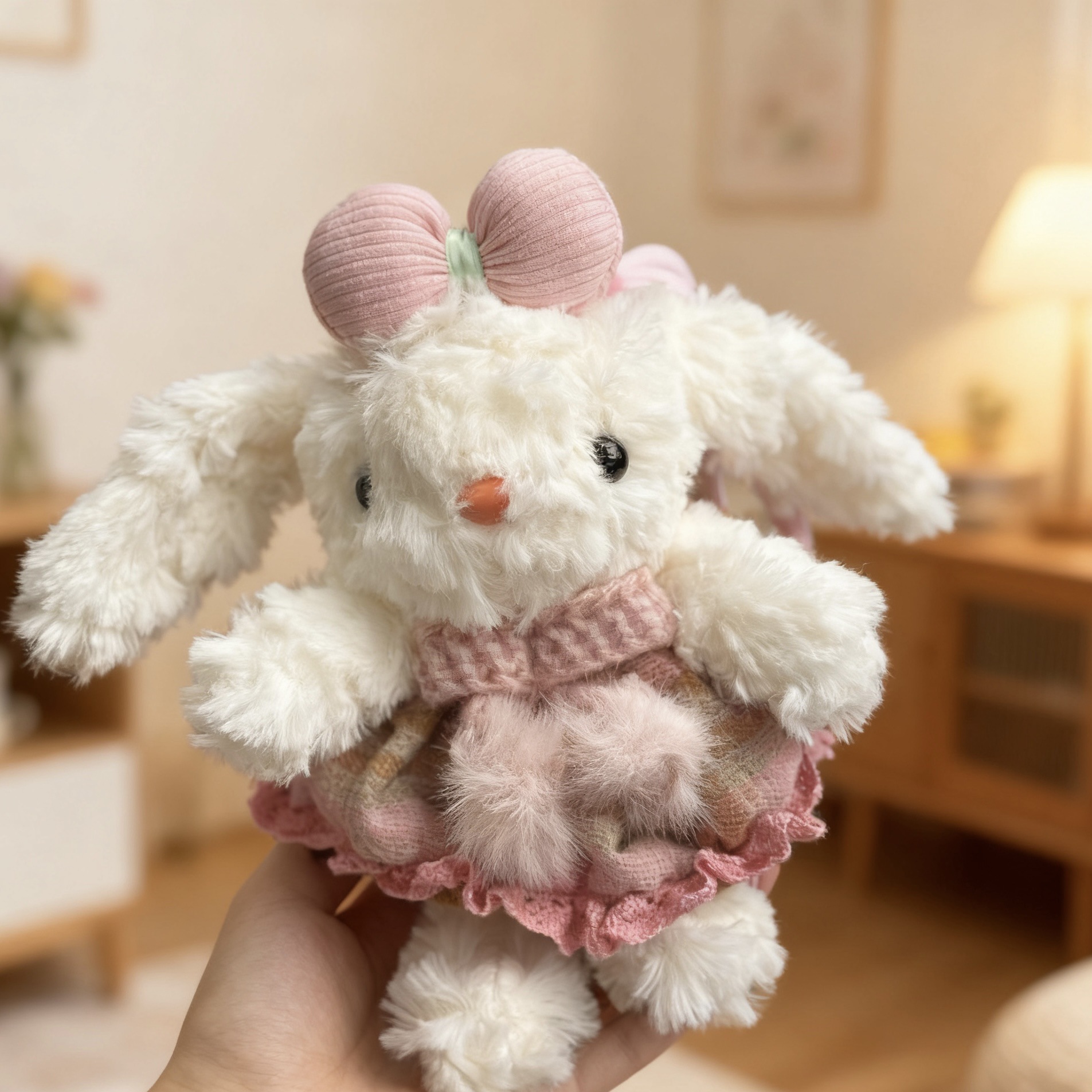 粉色裙子抱花兔兔(手绳款)