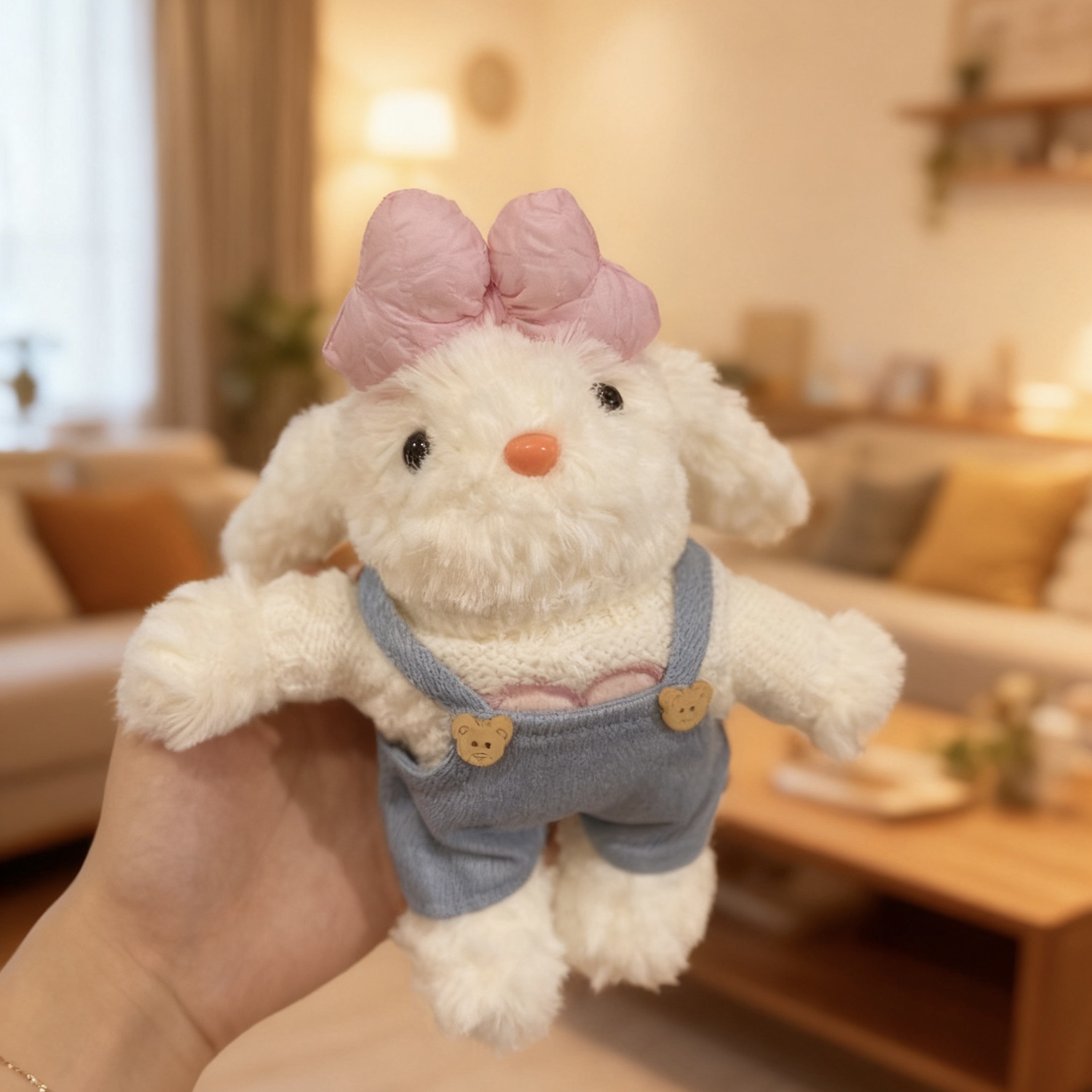 浅橘色裙子抱花兔兔(手绳款)
