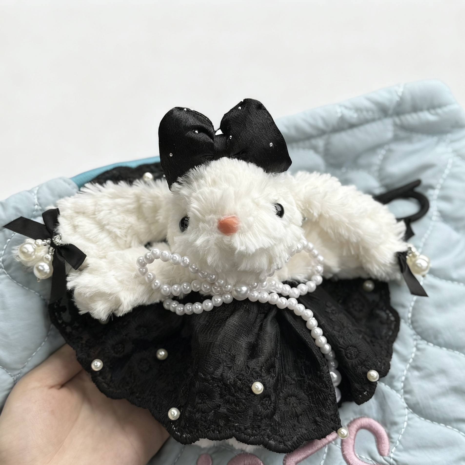 黑色珍珠格子裙兔兔(手绳款)