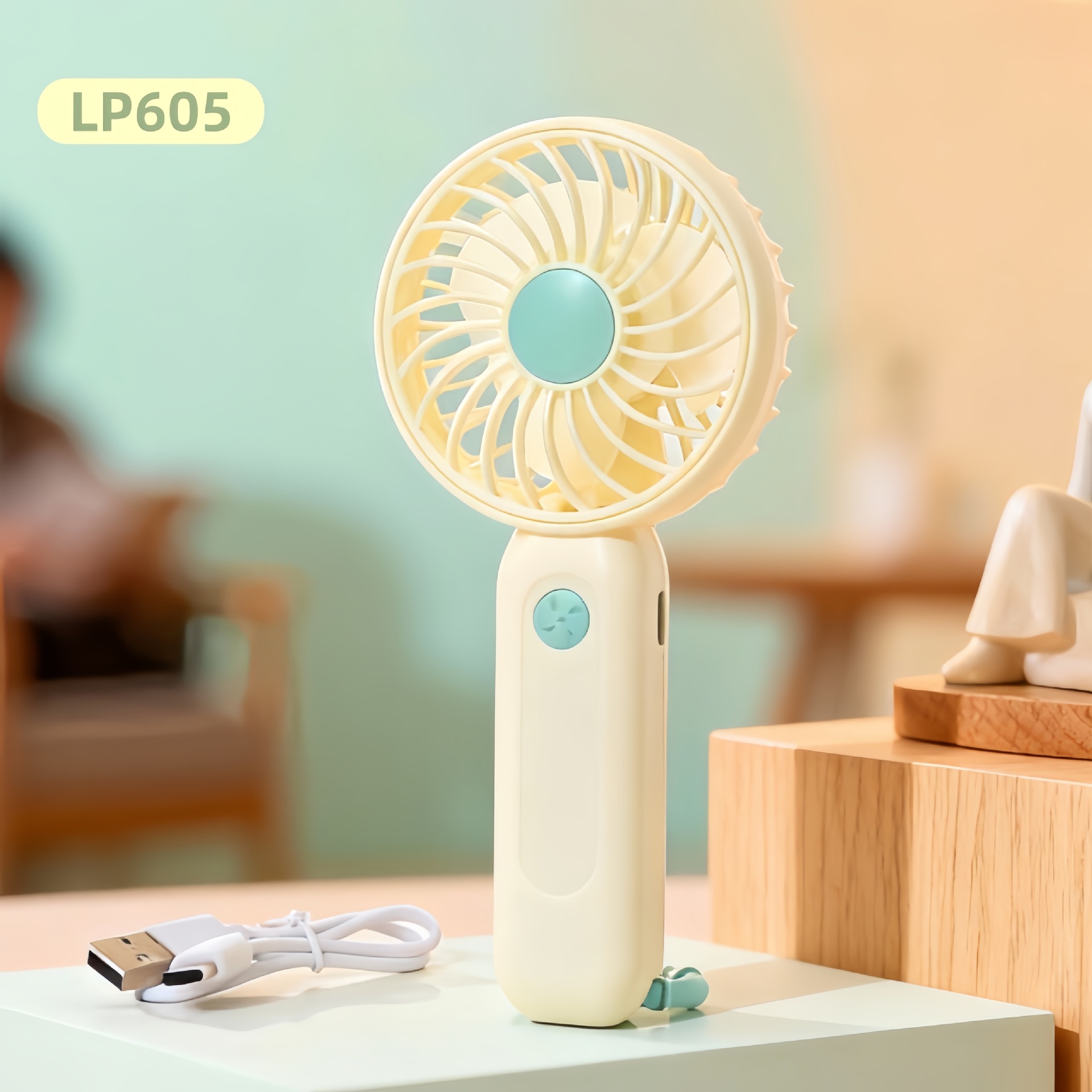 2026年新款奶油风拼色手持迷你电风扇 三档大风力提环旅行小风扇
