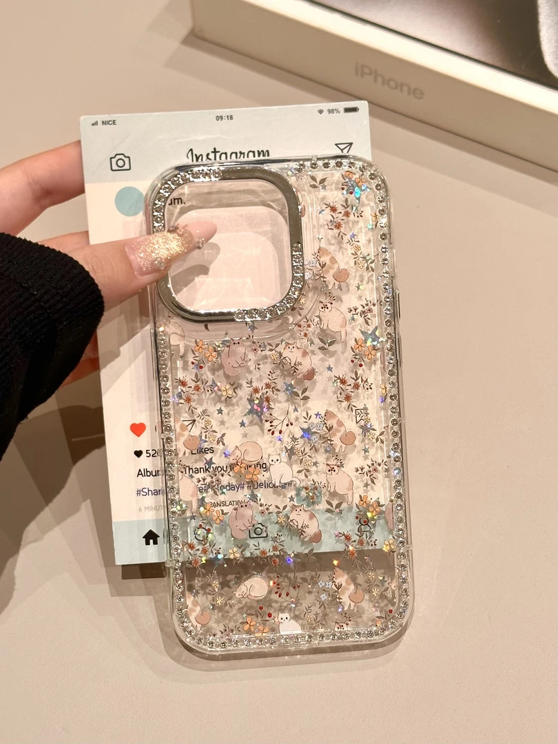 新款设计ins碎花小猫适用iP17/16手机壳14镭射13闪钻星星15清新12