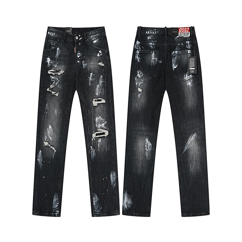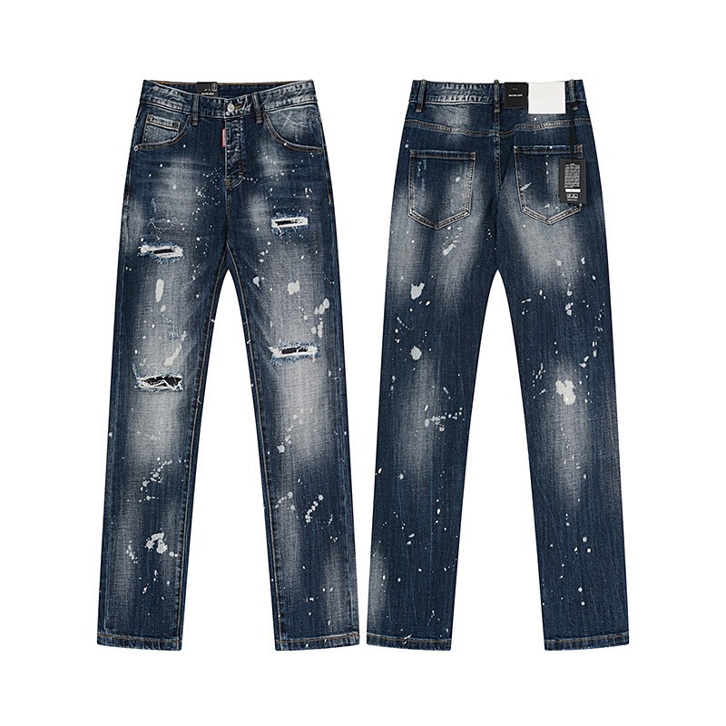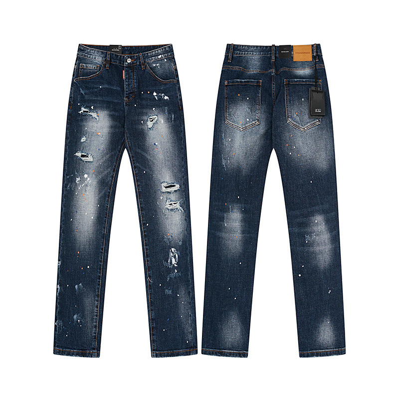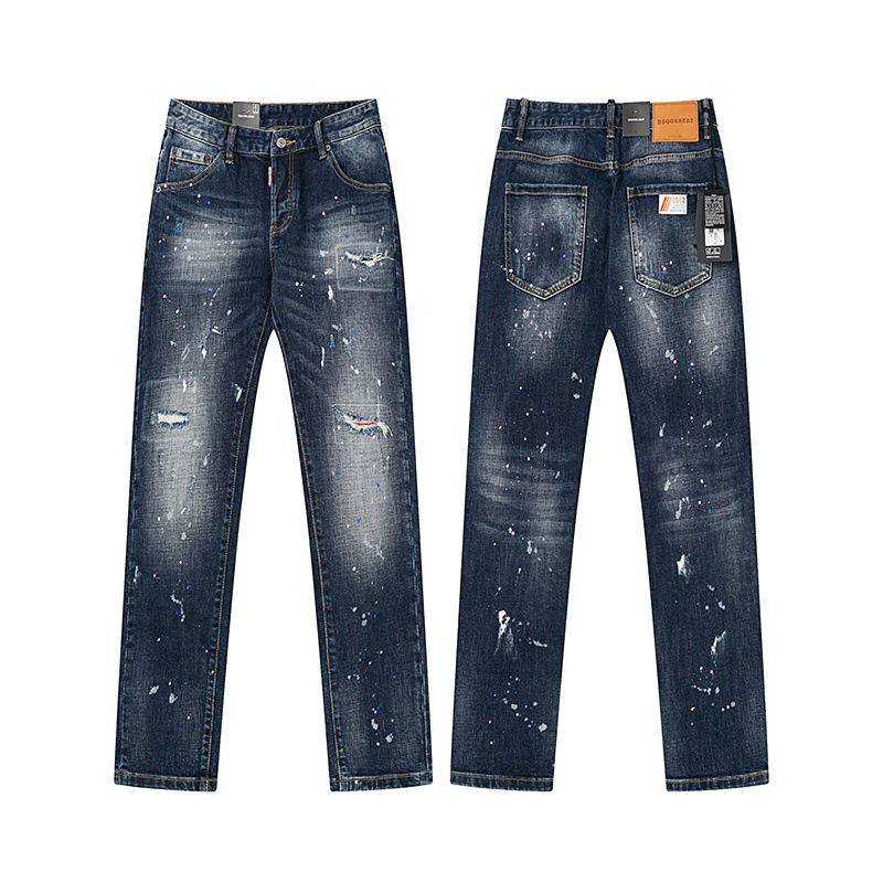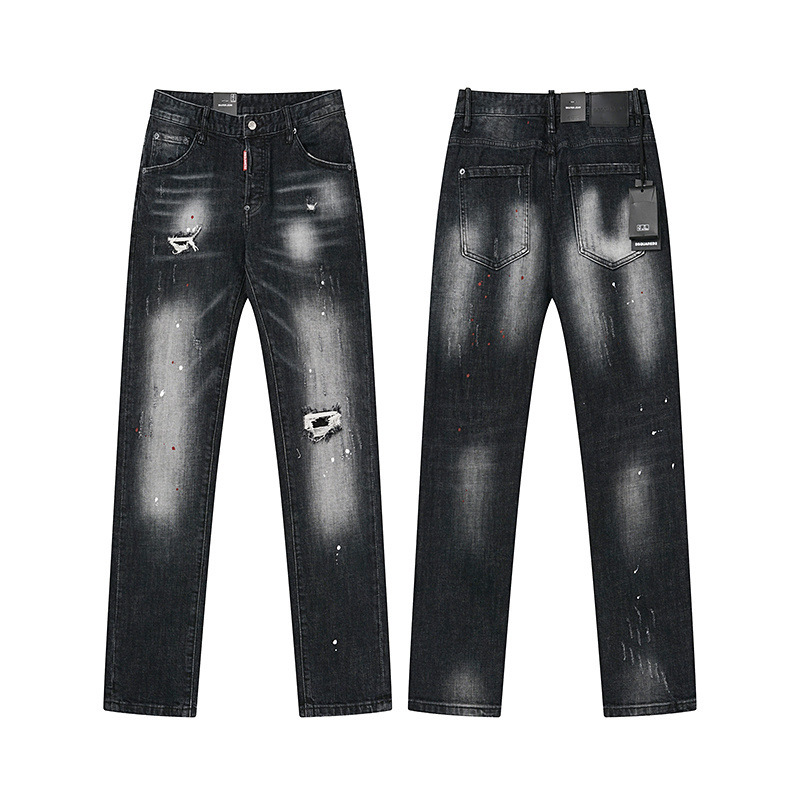 跨境外贸DSQUARED2修身小脚牛仔裤美式潮牌欧美式洗水做旧破洞潮