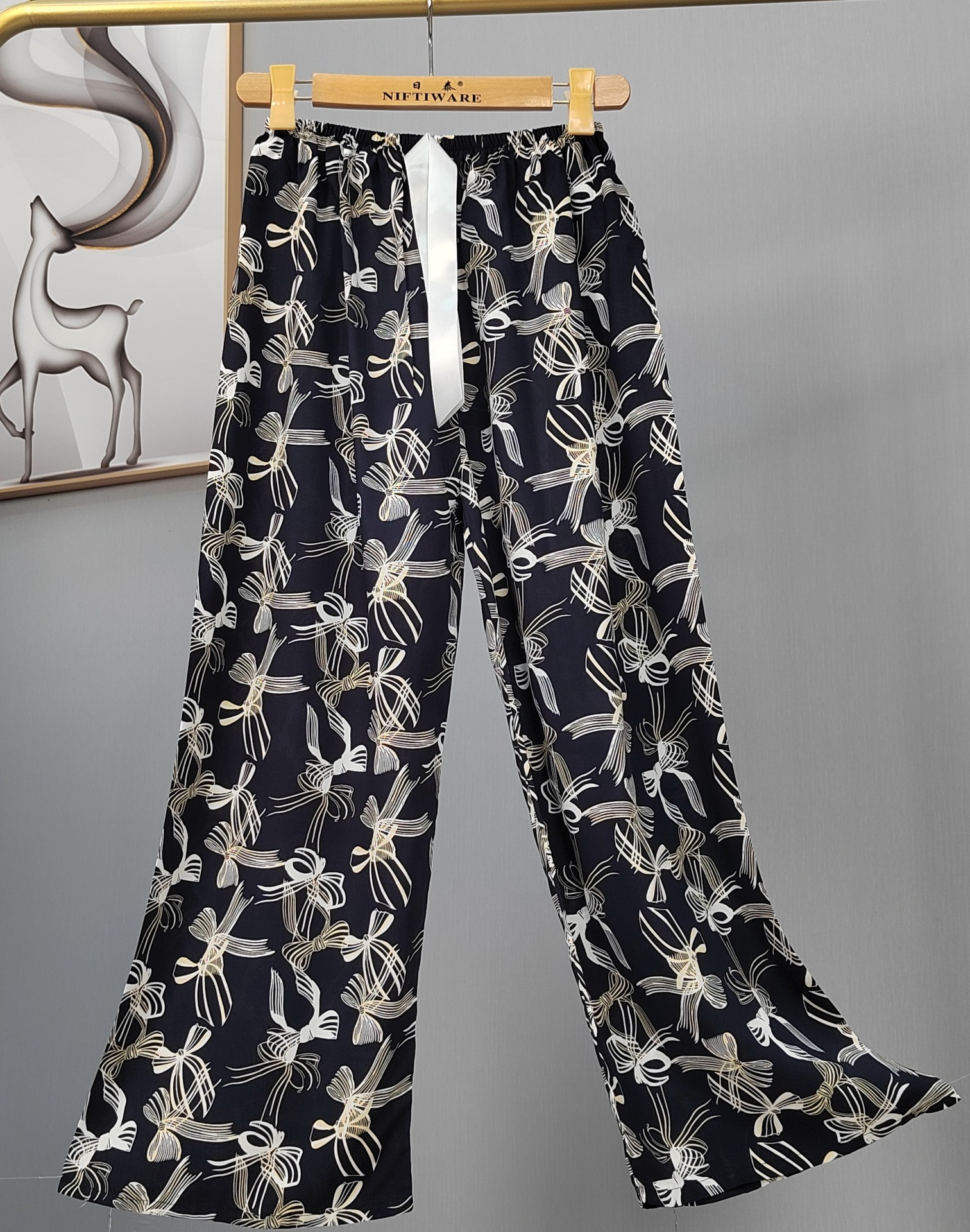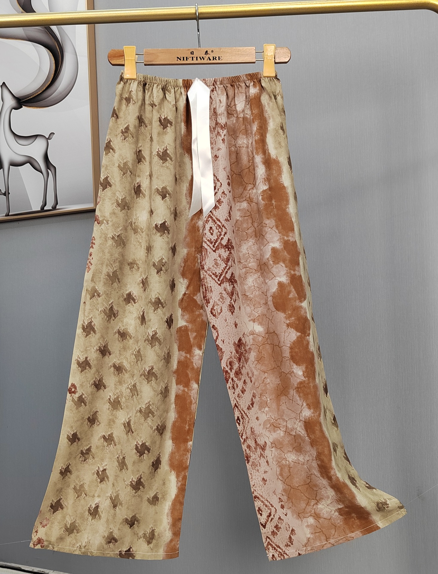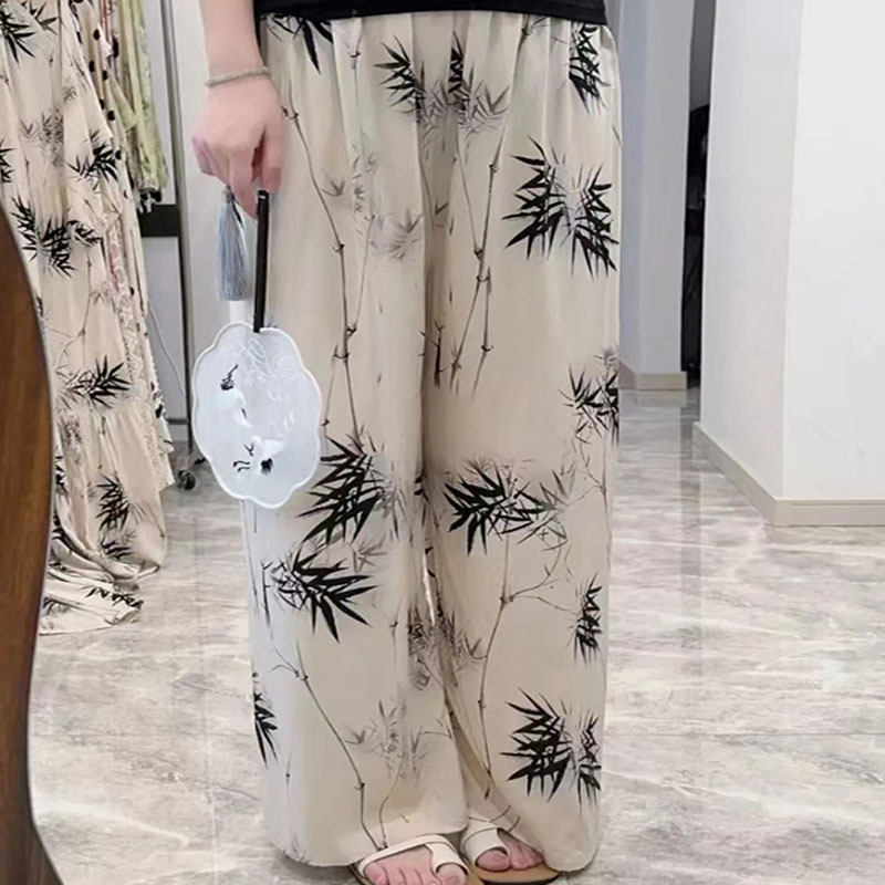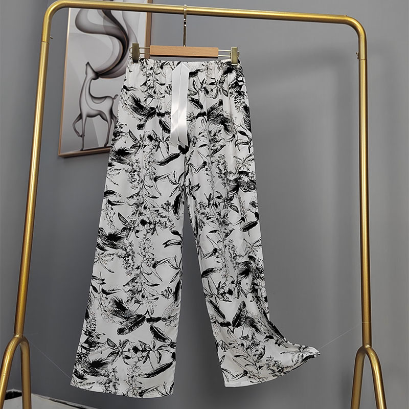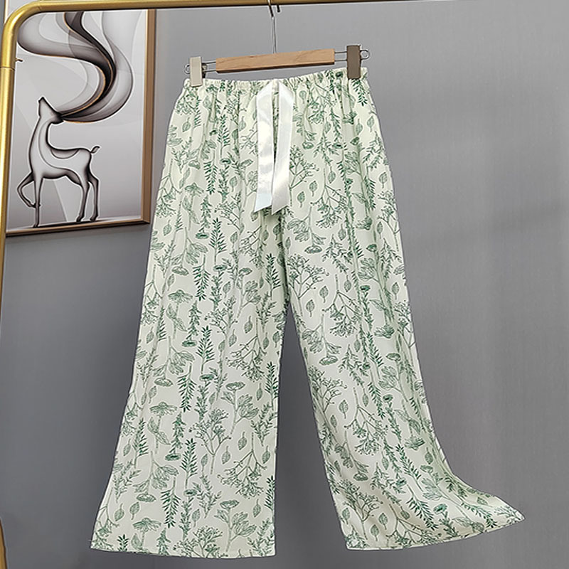 绵绸睡裤女士夏季薄款印花休闲阔腿裤孕妇可外穿外贸大码长裤