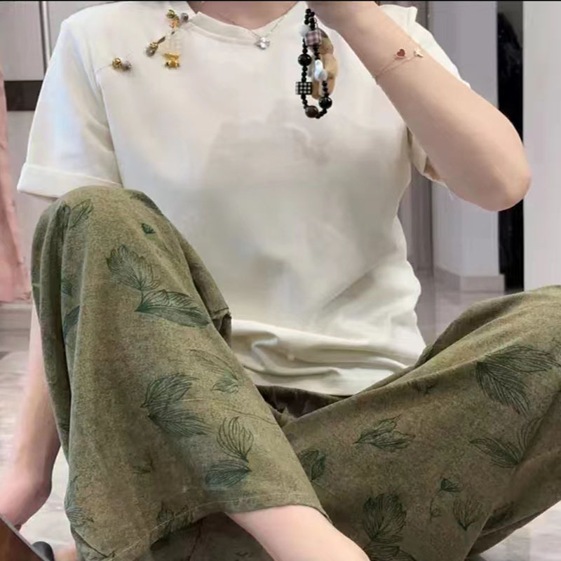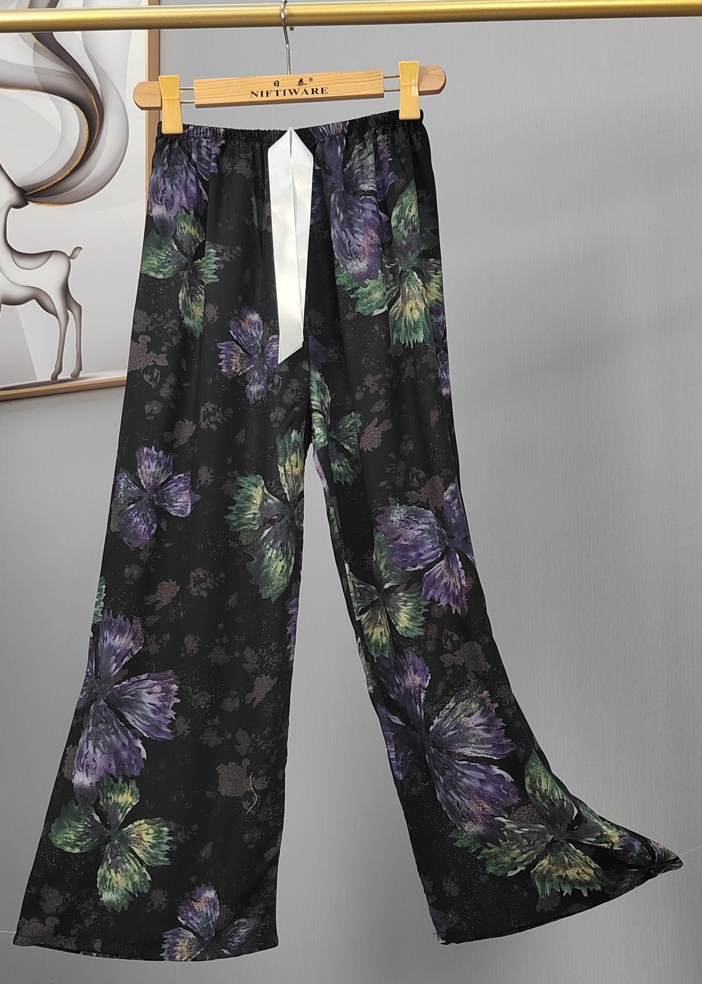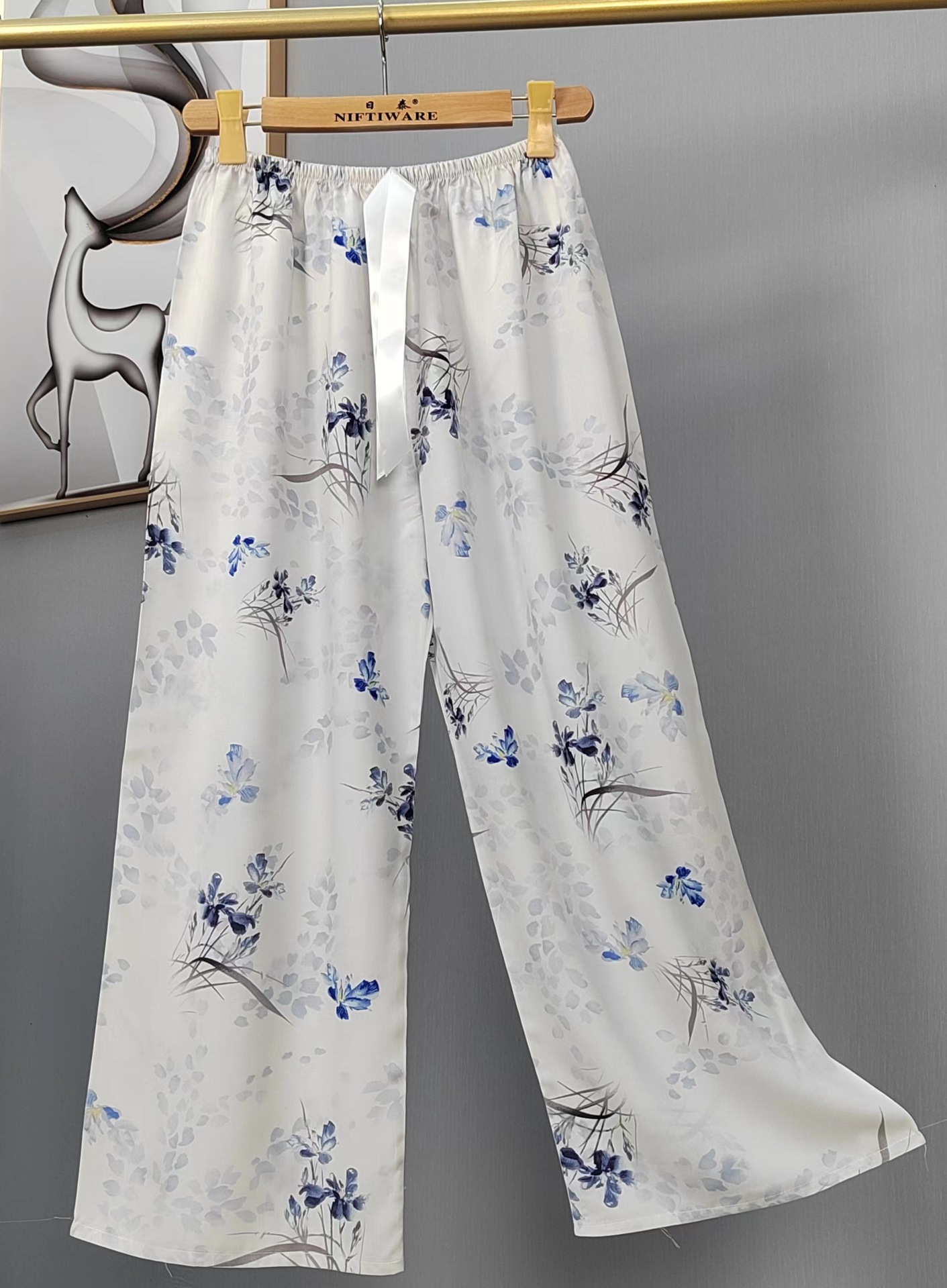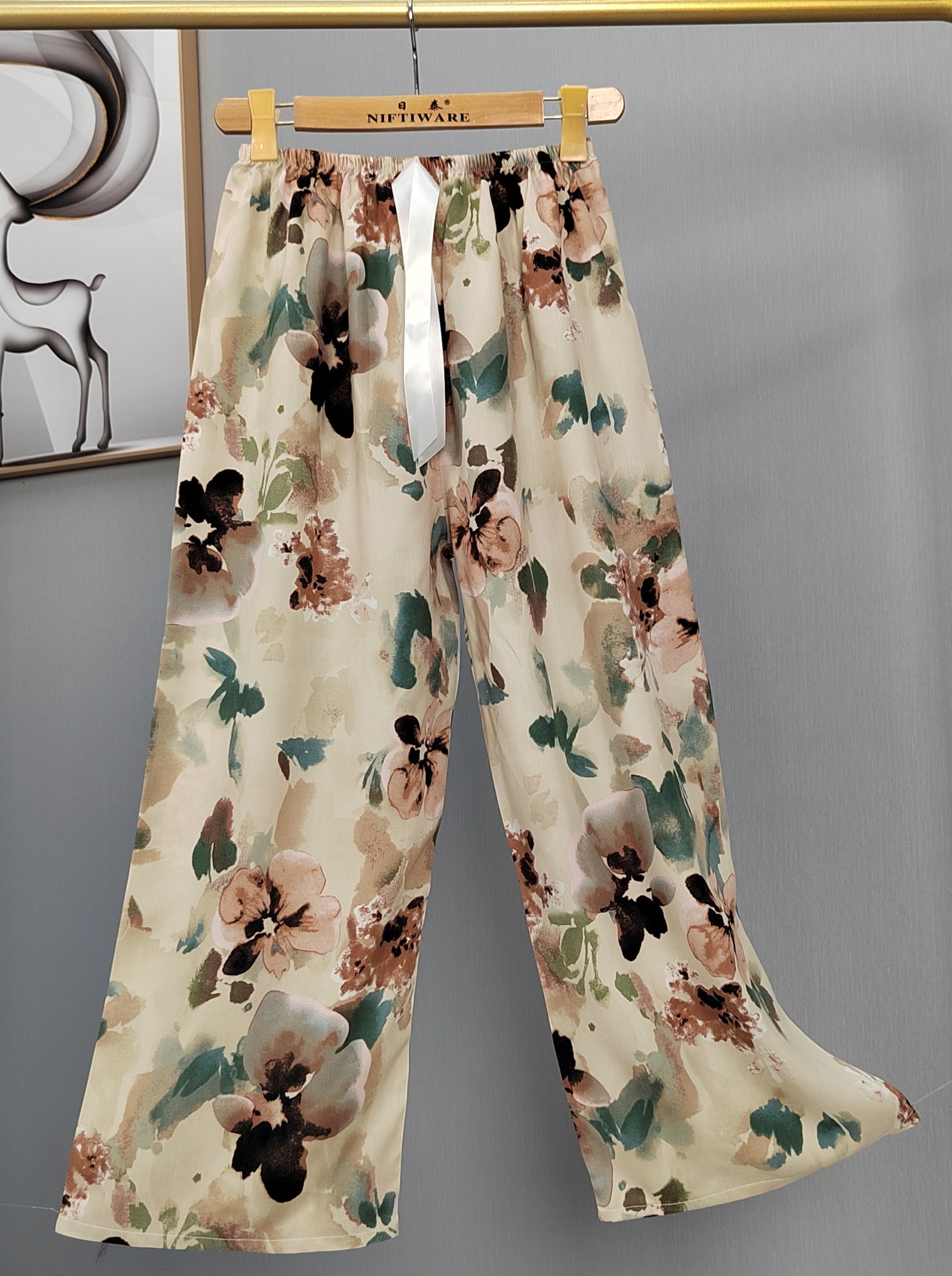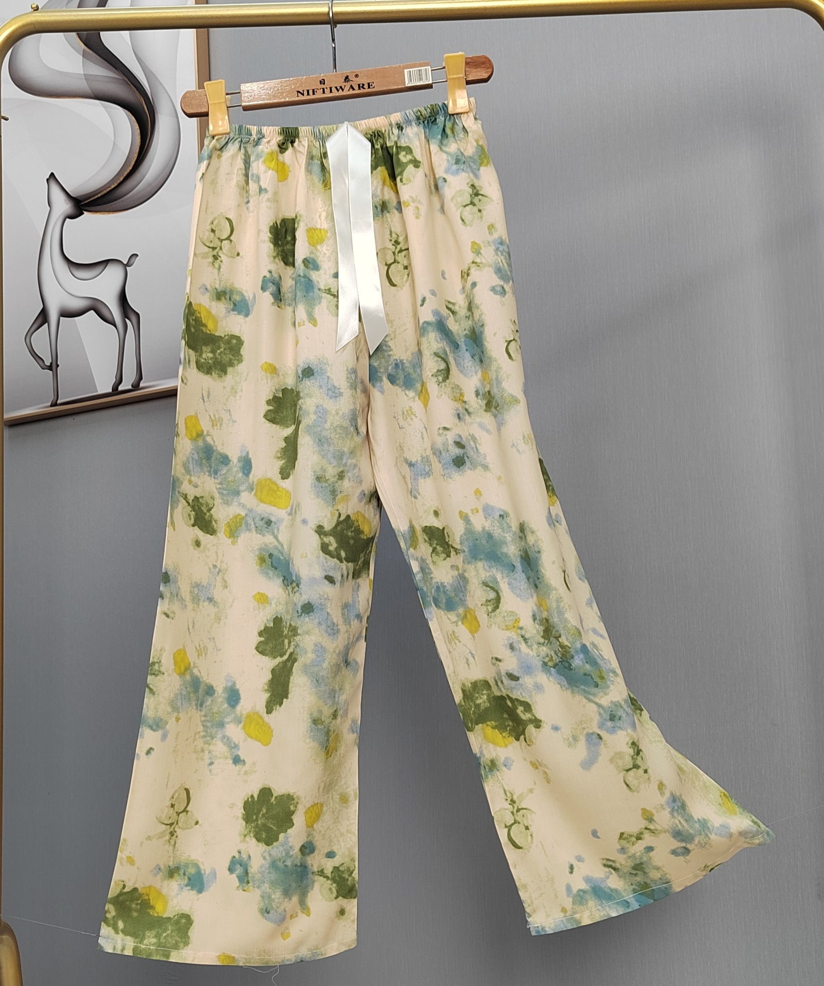绵绸睡裤女士夏季薄款印花休闲阔腿裤孕妇可外穿外贸大码长裤