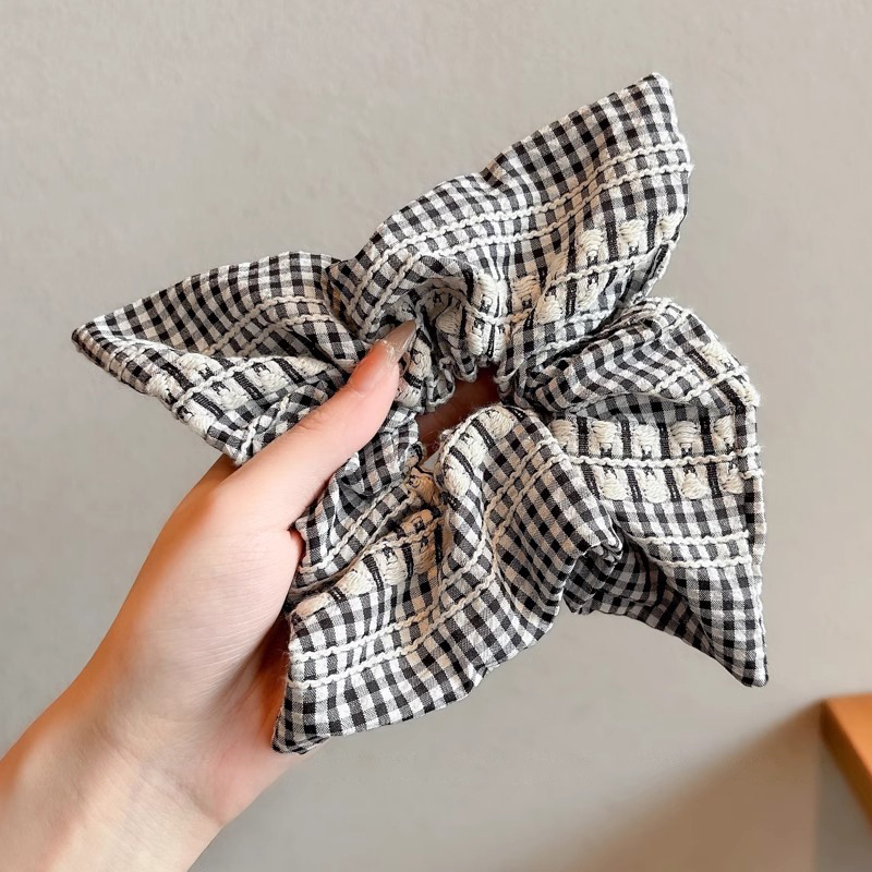 韩式方格布艺大肠发圈大号方巾扎发发绳发饰气质高级感扎马尾头饰