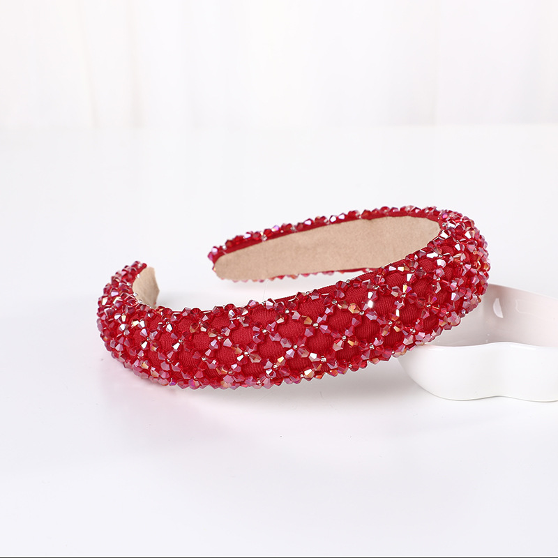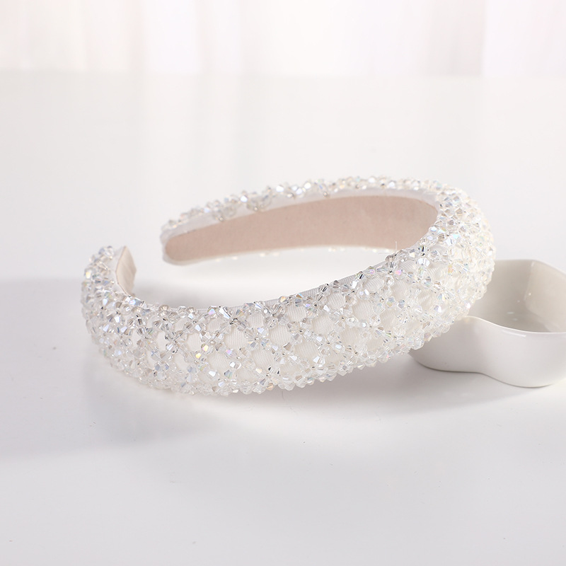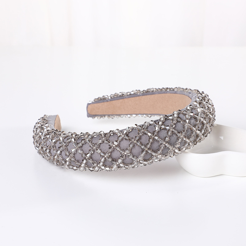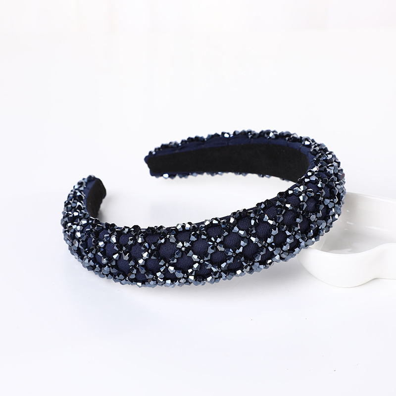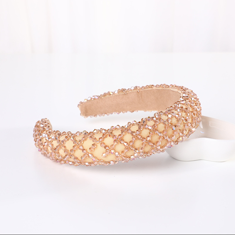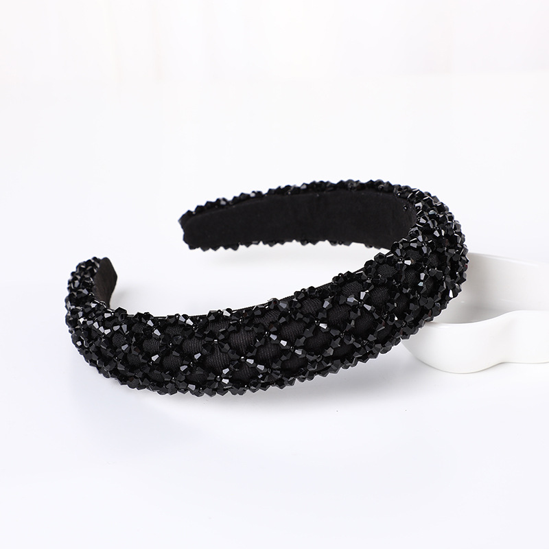 跨境新款欧美风巴洛克宽边水钻头箍简约时尚海绵水晶网格发箍发饰
