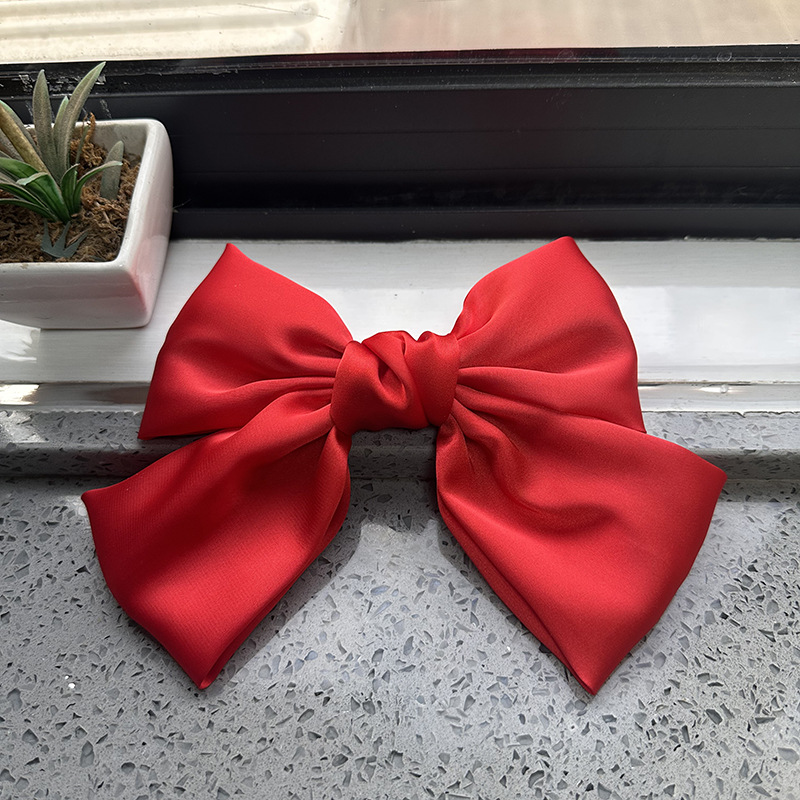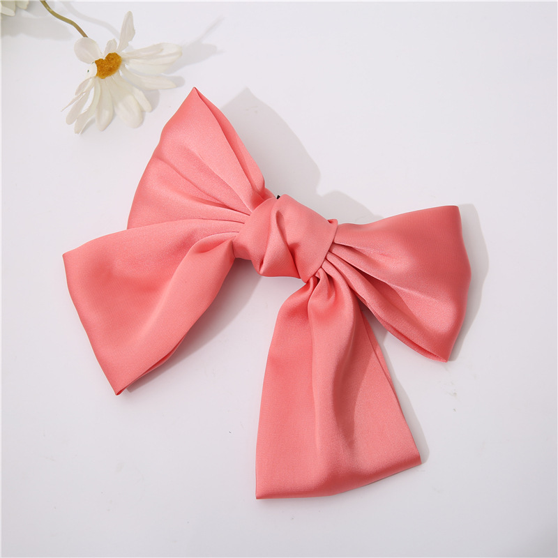 韩国ins纯色缎面雪纺大蝴蝶结弹簧夹网红潮流头饰女边夹发饰批发