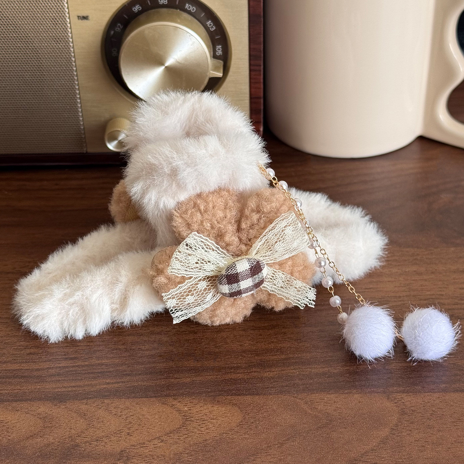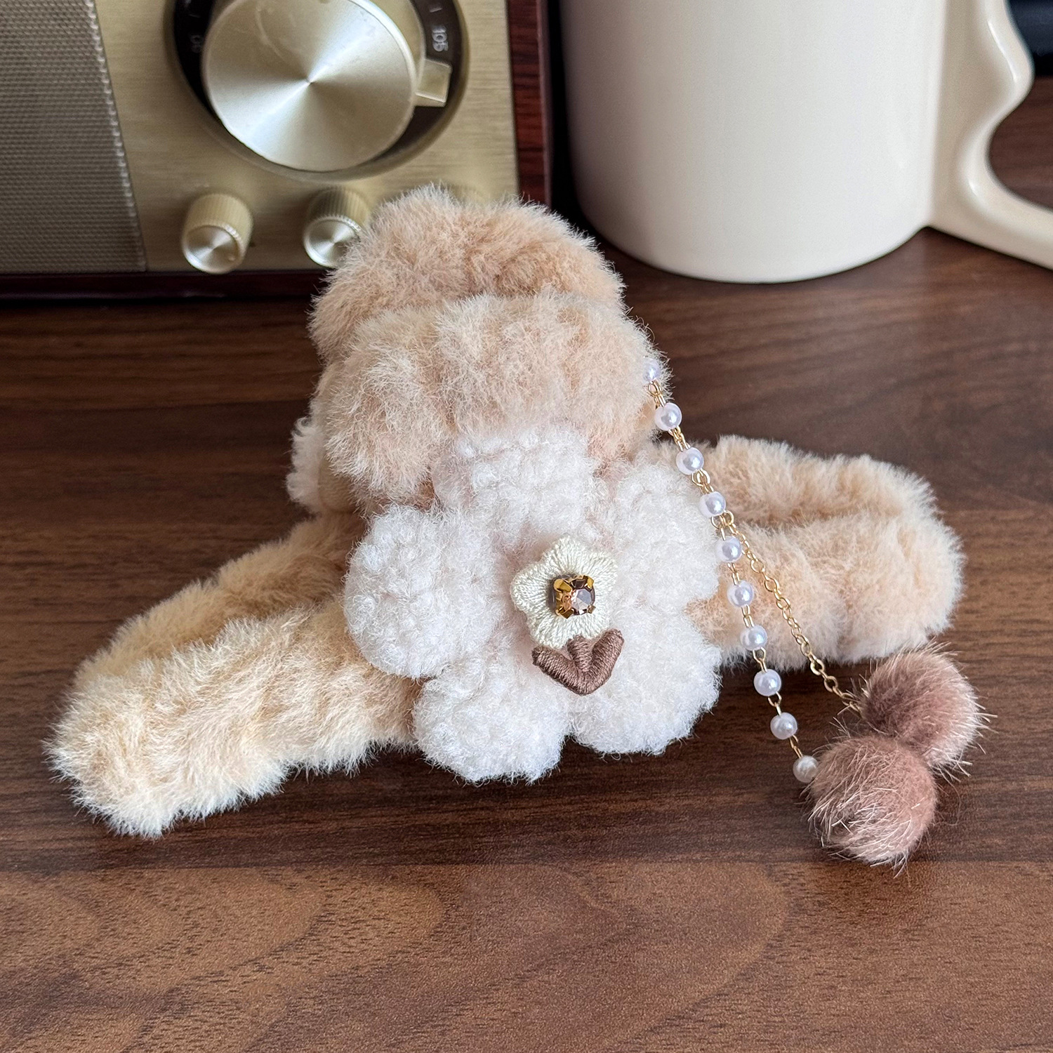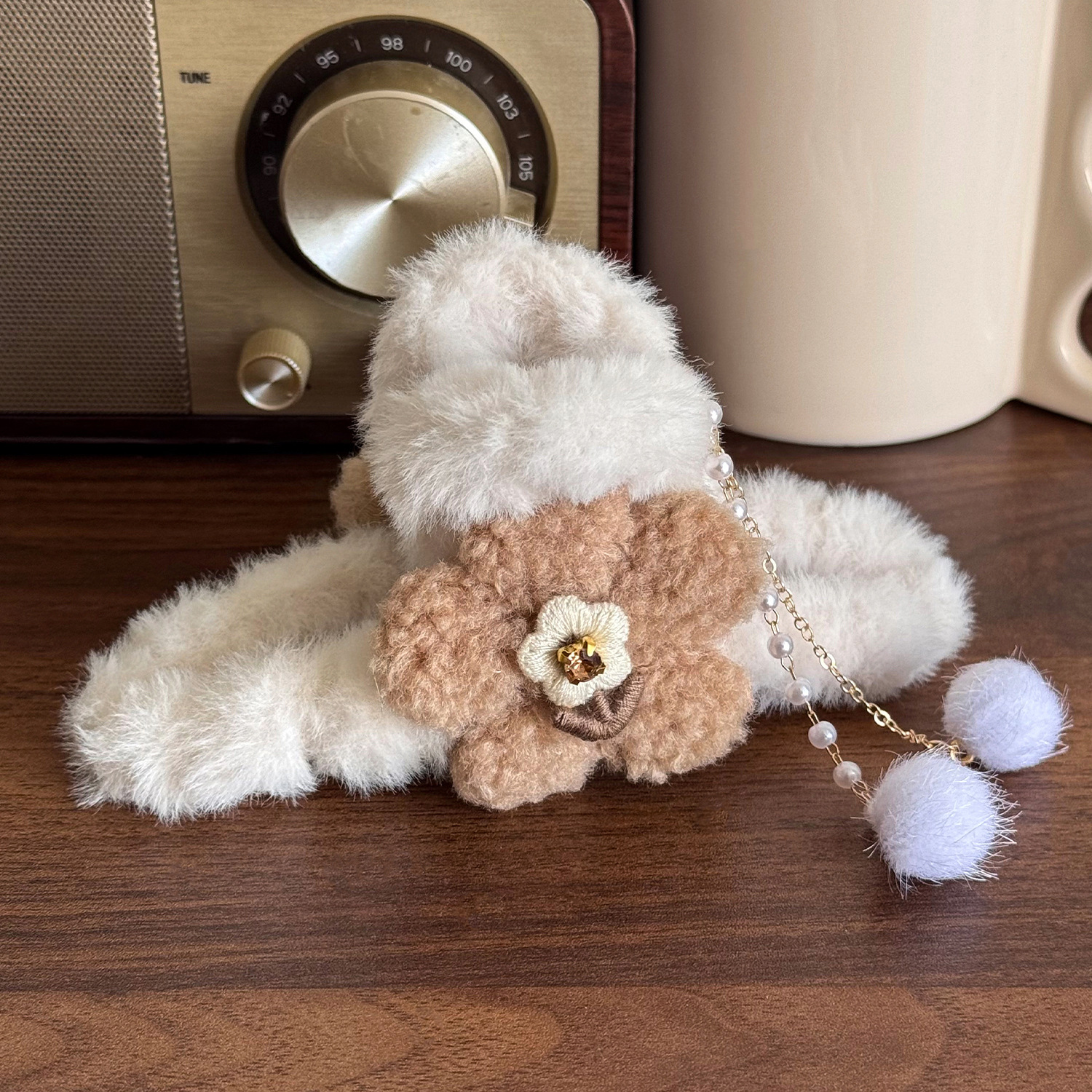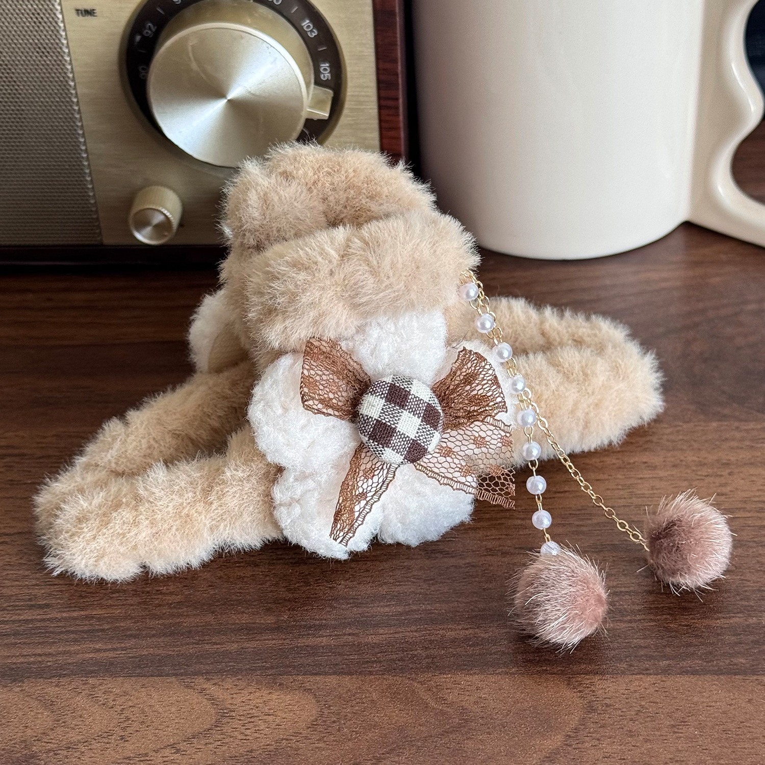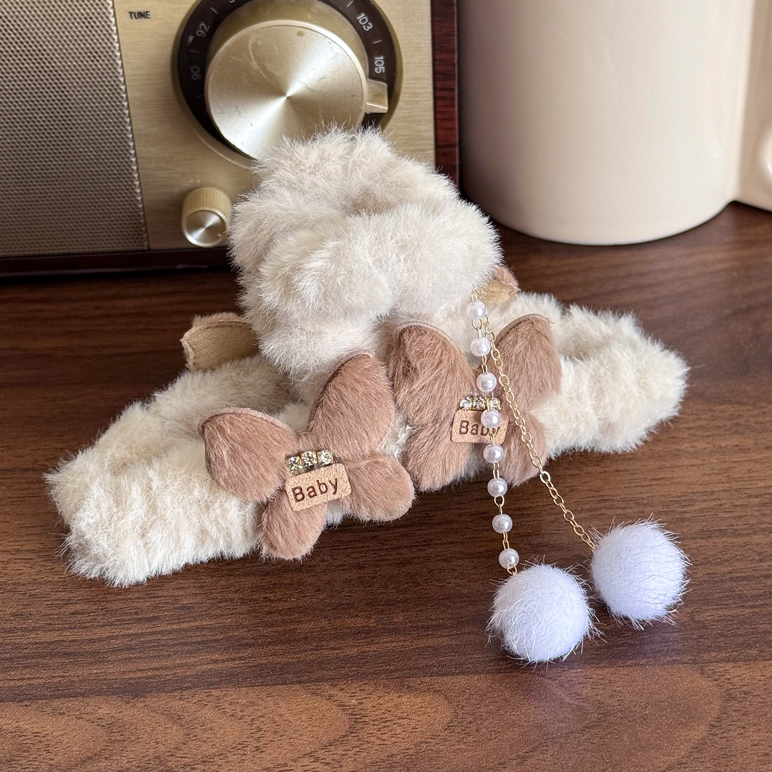 毛绒蝴蝶结流苏抓夹毛毛发夹后脑勺盘发秋冬发卡大号鲨鱼夹子头饰