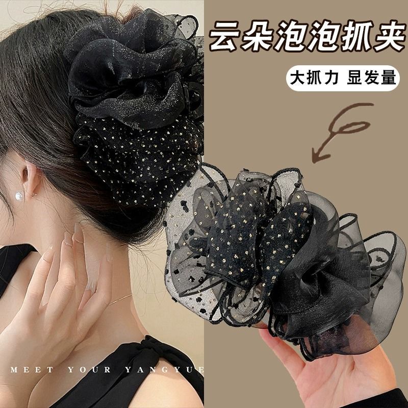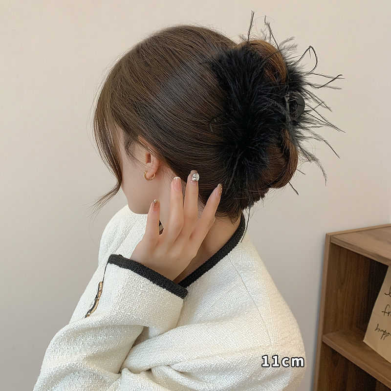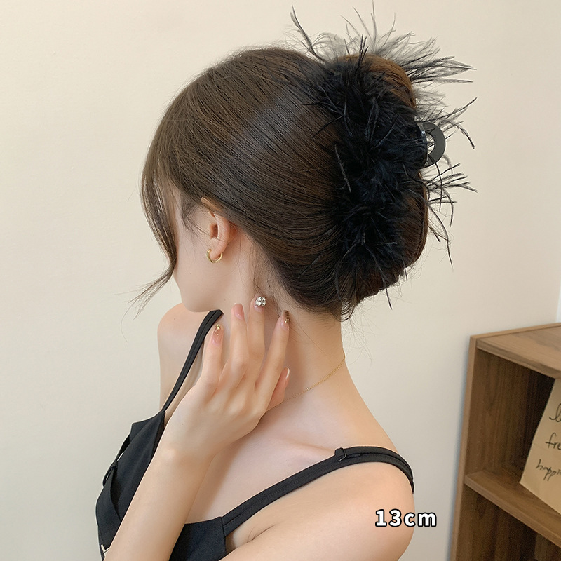 14#黑色羽毛网纱泡泡抓夹12.5CM